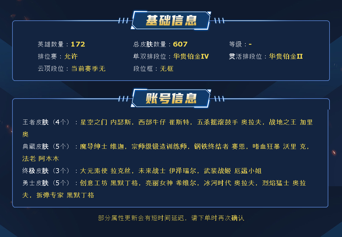 联盟五区丨德玛西亚丨全英雄丨606总皮丨可排位可炸鱼丨大元素使丨未来战士丨武装战姬丨请勿挂机谢谢