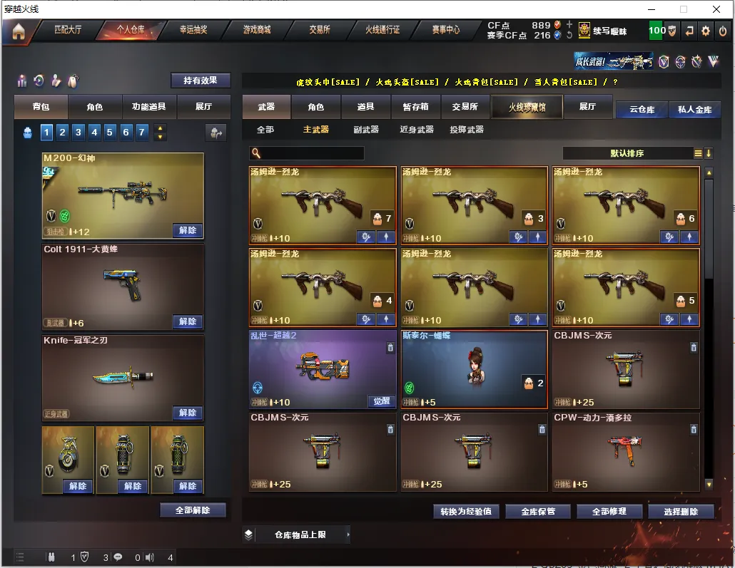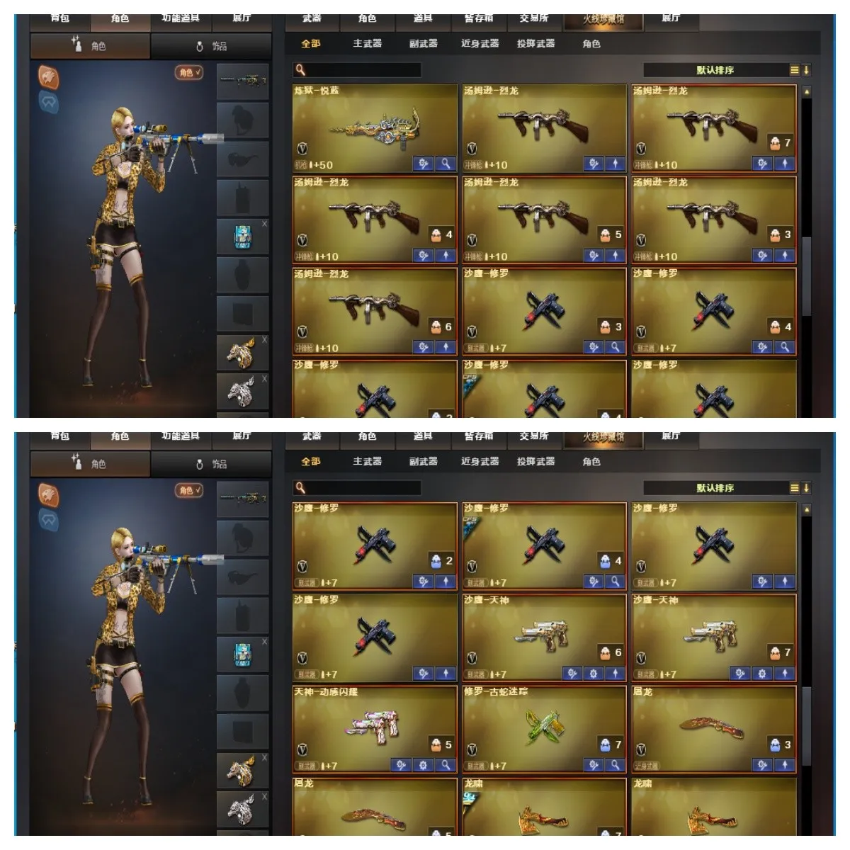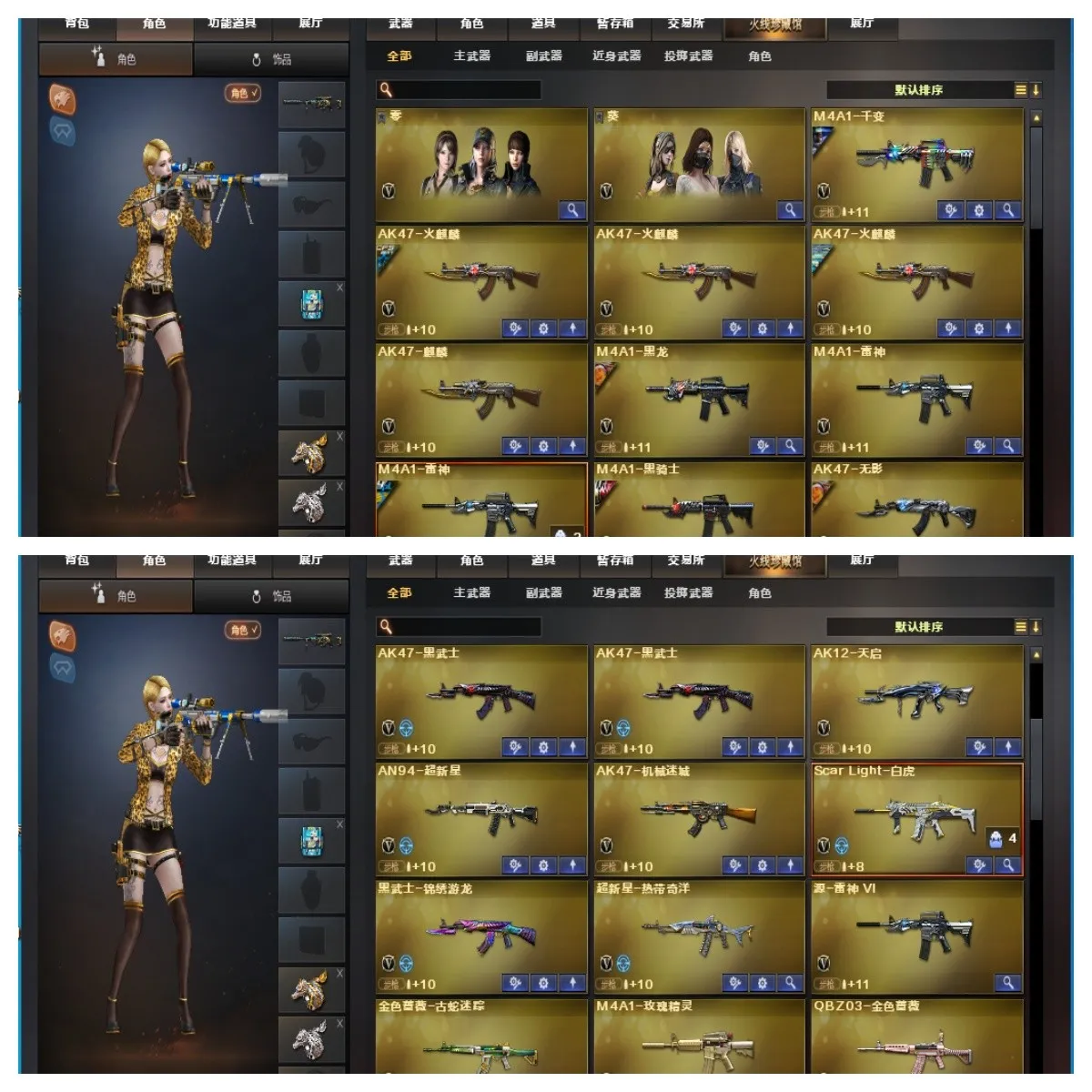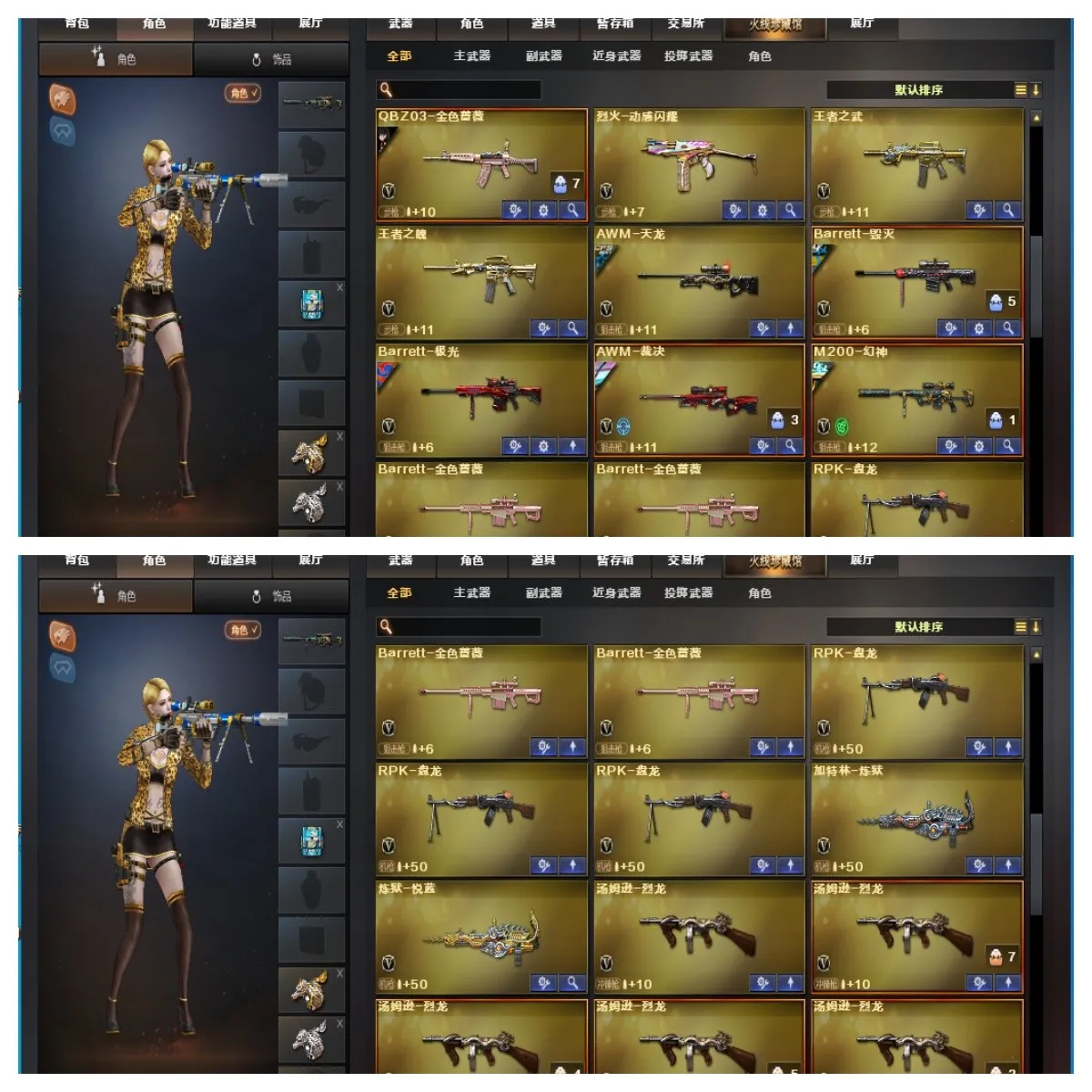 【移动专区-移动专区】2把冠军之刃! 71V10王者2炫金VIP6【主武器类型】 M200-幻神 Scar-白虎 Barrett-毁灭 Barrett-极光 AWM-裁决 王者之魄觉醒版 M4A1-雷神 *2 QBZ03-金色蔷薇 *2 王者之武觉醒版 M4A1-黑龙 M4A1-黑骑士 M4A1-千变 AK47-火麒麟 *3 AK47-无影 AK47-黑武士 *2 黑武士-锦绣游龙 AK47-麒麟 AK47-机械迷城 AK12-天启 AN94-超新星 超新星-热带奇洋 烈火动感闪耀 汤姆逊-烈龙 *6 斯泰尔-蝴蝶 RPK-盘龙 *3 炼狱悦蓝觉醒版 加特林-炼狱 AWM-天龙 炫金火麒麟 炫金雷神 C.A.T M4A1-玫瑰精灵 Barrett金色蔷薇 *2 AA12-擎天柱 QBZ03-吕布 黄金AK 闪光弹-云龙 高爆手雷雷暴 *3 闪光弹雷暴 *3 烟雾弹雷暴 *3 动感闪耀手雷 手雷-热带奇洋 【王者武器】 玫瑰精灵-悦动 王者之魄闪光弹 【副武器类型】 沙鹰-修罗 *6 修罗-古蛇迷踪 沙鹰-天神 *2 天神动感闪耀 Cfcolt1911大黄蜂 【近身武器类型】 Knife-冠军之刃 王者之锋觉醒版 屠龙 *2 屠龙动感闪耀 龙啸 *2 龙啸-热带奇洋 麒麟刺 王者之击觉醒版 擎天 *3 斩神刀-雷暴 荣耀之证 猫猫手套 夺魂 【稀有角色】 王者-魅影 王者-零 职业选手 葵 零 奇洋探员 乔伊教练 兔囡囡 兰海滩派对 兰新年限定 麻雀 堕落女神 龙儿-小淘气 蜀雪 潘多拉X 暗夜X 铁骑荣耀 幻影 堕天使 复仇者 超级护目镜 闪光护目镜 超级对讲机 超级背包 炫彩背包 【武器皮肤及道具】 幻神音效卡 幻神-冠军之幻 QBZ03-AG-CFPLS19冠军 雷神-荣耀之魄 雷神-暗月 雷神-能量核心 火麒麟-心动糖果 传奇石头-横秒之巅 火麒麟-CFSTAR 火麒麟-平天大圣 毁灭-荣耀之怒 毁灭-墨兰 毁灭-直播专属 毁灭耀金 黑骑士-战神马超 黑骑士-AG-S4冠军典藏 黑龙-能量核心 裁决-流光秘银 天龙-CFSTAR 极光-能量核心 M4A1-千变-孔明 修罗-CFSTAR 龙啸-冠军之啸 毁灭音效卡 黑骑士音效卡 雷神音效卡 【稀有套装】