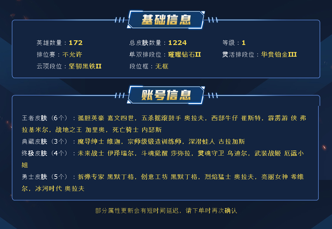 ~~喜欢记得收藏~~可排位~~1205皮全英雄丨882原皮323炫彩~~租之前尽量查一下游戏ID,确保段位是您需要的,避免浪费您的时间~~请勿挂机逃跑故意送人头,谢谢合作,谢谢~~