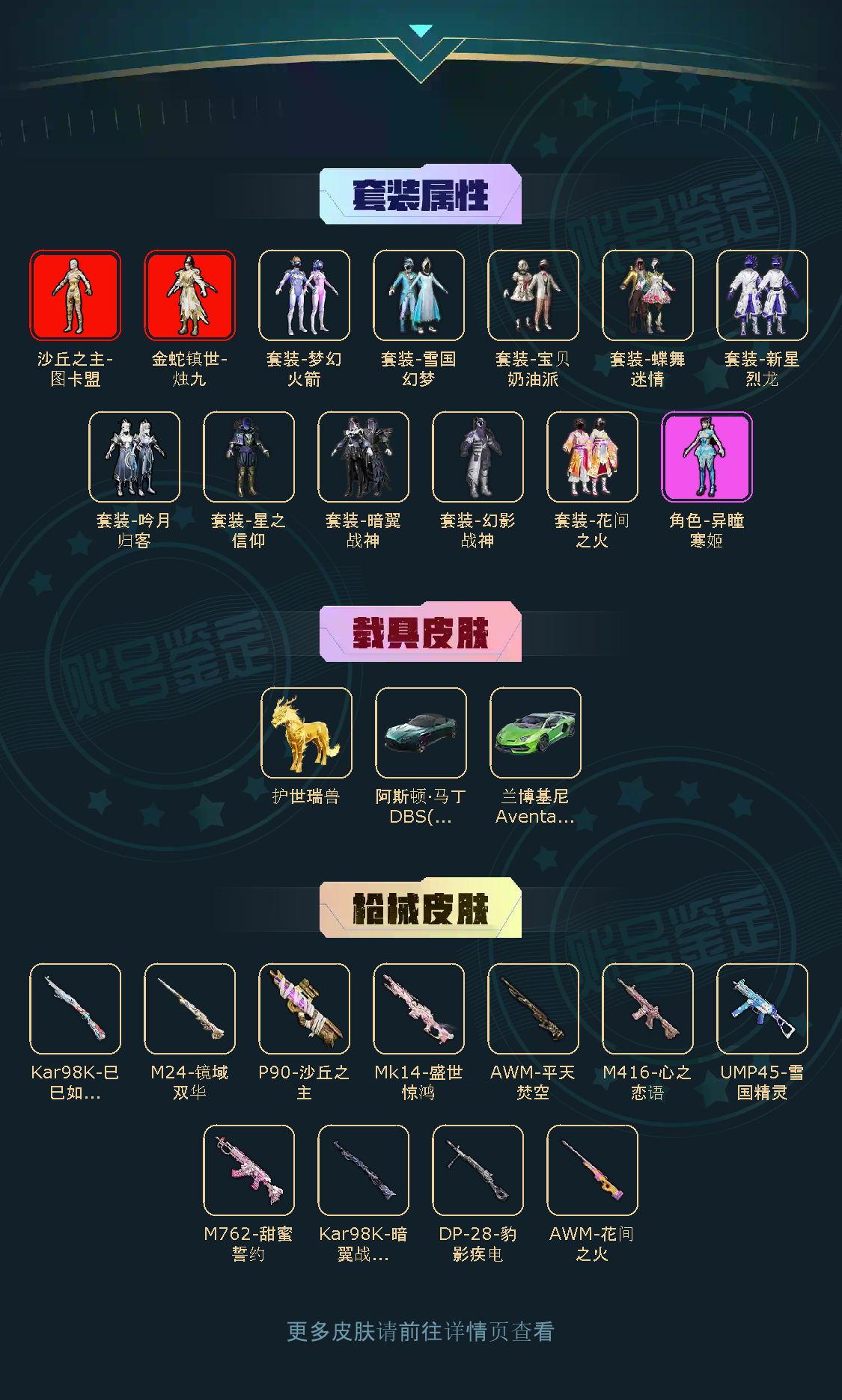 【稀有资产】金蛇镇世-烛九[1级]/沙丘之主-图卡盟[2级]/套装-雪国幻梦/套装-奇异狩猎者/套装-浪漫天命/套装-浪漫波比/角色-摩登魅猫