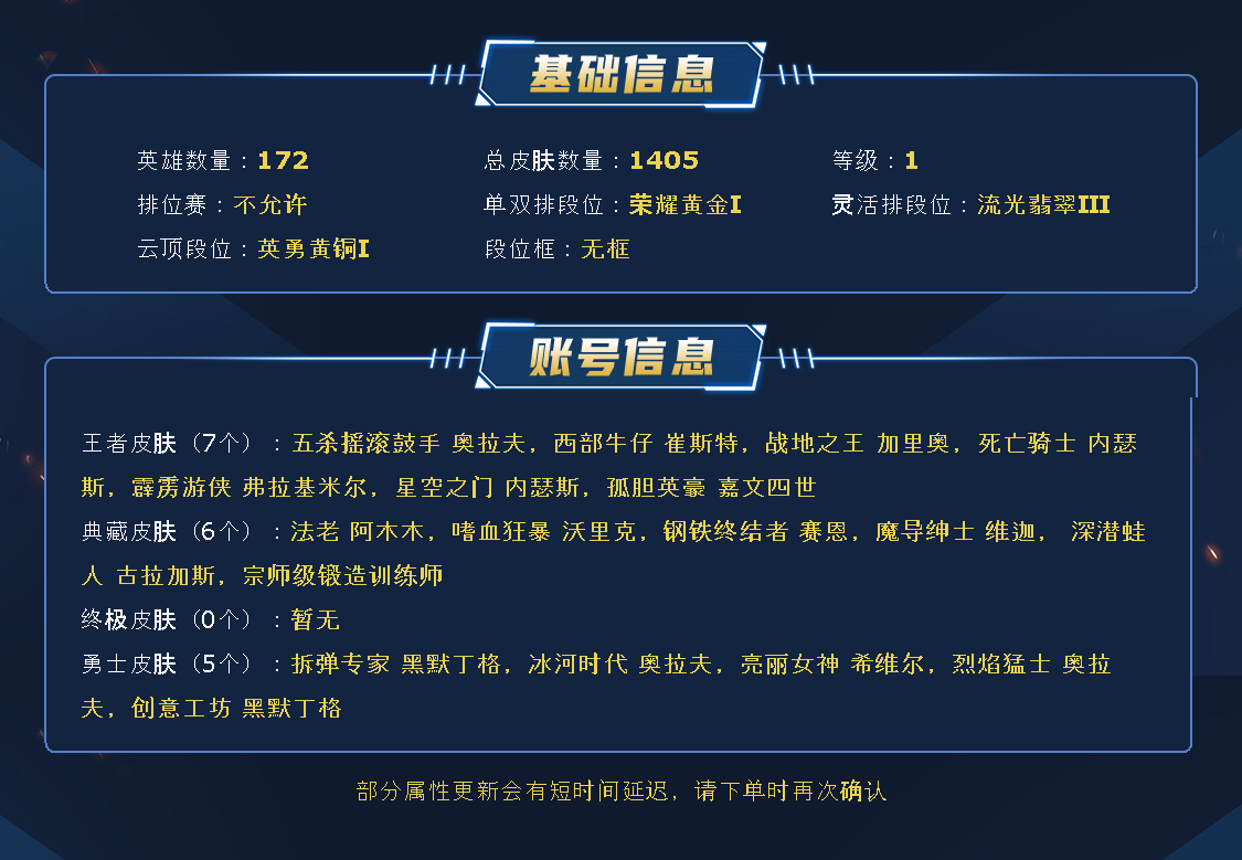 ~~喜欢记得收藏~~可排位~~1391皮全英雄~~租之前尽量查一下游戏ID,确保段位是您需要的,避免浪费您的时间~~请勿挂机逃跑故意送人头,谢谢合作,谢谢~~