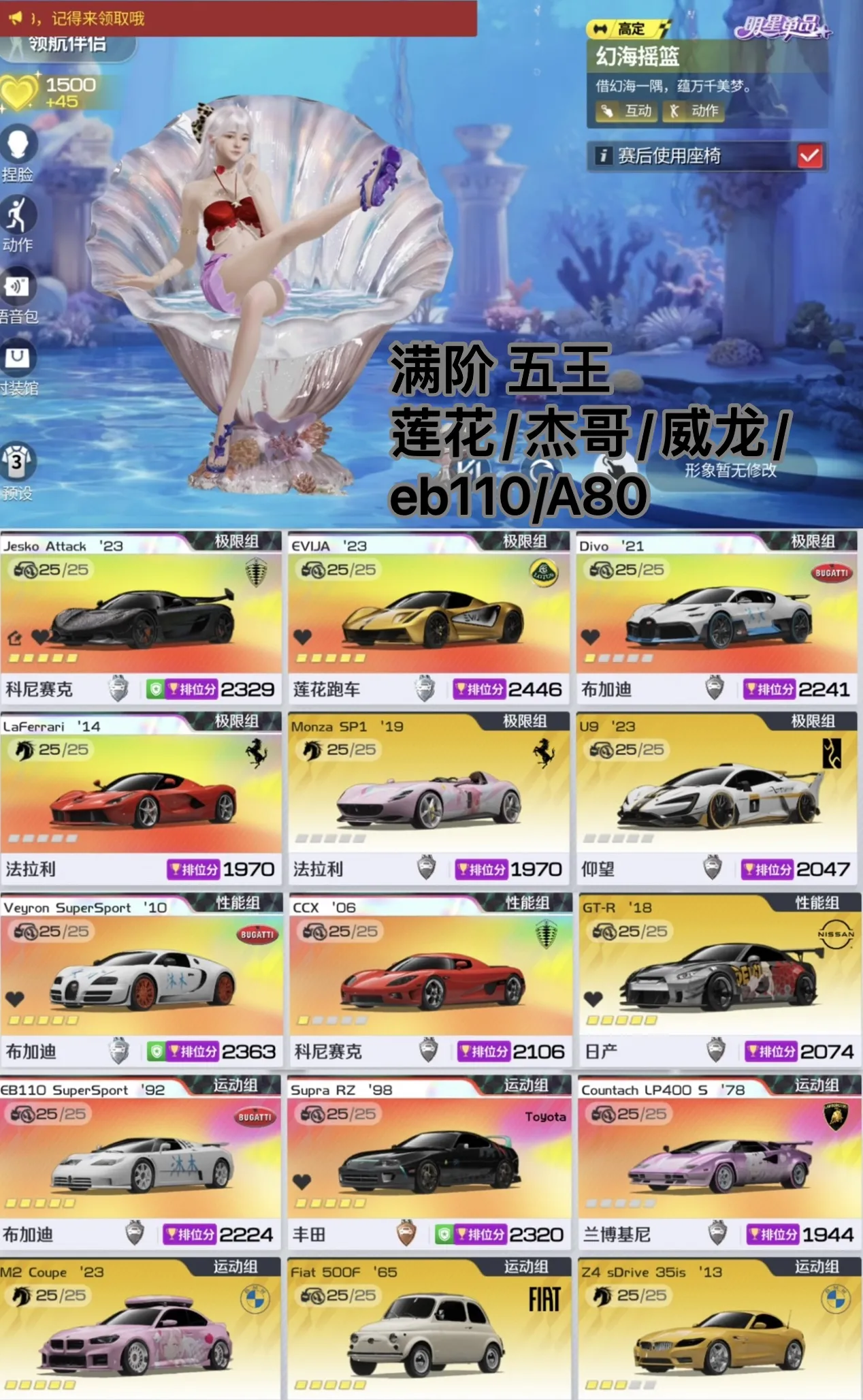 【安卓】 满阶五王✅满阶莲花/杰哥✅满阶威龙✅满阶eb110/满阶a80
