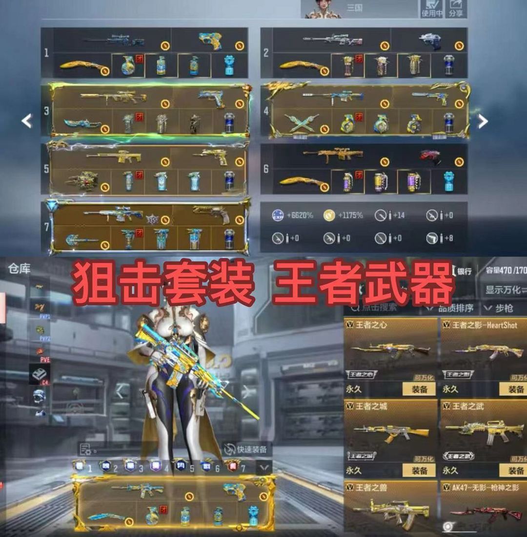 本游戏账号:英雄武器177个, 王者武器26个。军衔: 荣耀元首,段位: 枪王,拥有:樱,萝拉,关小雨,等10个角色。装备齐全让你拥有完美游戏初体验,特殊装备有:M4A1-机械迷城、暗杀神、王者之刺、死神烟雾弹、王者之电、王者之圣、王者之圣闪光弹、王者之心烟雾弹、王者之翼、王者之锋、王者之烈、王者之轮、黑武士烟雾弹、AA12-竞界荣光、雷神烟雾弹、雷神闪光弹、王者之魂、MK23-机械纪元、铁锹-超新星、斯泰尔-蝴蝶、沙鹰-超新星、王者之心、尼泊尔-雷霆、王者之武、死神闪光弹、王者幻神、尼泊尔-竞界荣光、巴雷特-定军、M4A1-竞技战魂、MK47-机械纪元、AWM-裁决、暗杀星、巴雷特-毁灭、王者之城、巴雷特-雷神、地狱烈炎、王者之神、剑齿虎、黑武士手雷、麒麟刺、巴雷特-枪娘、M4A1-竞界荣光、巴雷特-雷霆、激光毁灭者Ⅲ、巴雷特-战龙、闪光弹-金星、黄金风之子、尼泊尔-牡丹、尼泊尔-翡翠、风之子、关小雨、王者-零、等,随意畅选。