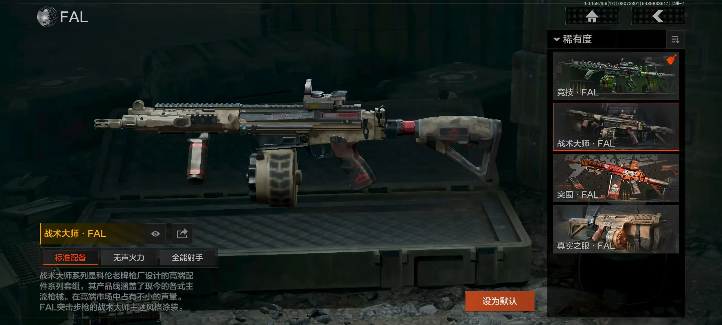 【角色皮肤】:硝云余响作战服,都护铁衣战术甲胄,钢铁壁垒作战服,噤声者吉利服,矿山霸主常服;【近战武器】:三尺万仞战术剑,涂鸦利刃,胜利军刀,明刀绣春,冬日冰镐,急袭弯刀,精英指虎,瑞兔折刀,工兵铲,来战开山刀;【手套】:玉鸾挂枝手套,角弓得控手套,战术甲胄防护手套,急袭手套;【突击步枪】:竞技FAL,战术大师FAL,骑士之剑M4A1,伦琴幻影H416,水果AR57,突围FAL,缟兵玄墨AKM,巅峰M4A1,德尔塔小队M4A1,竞技M4A1,炎夏浪花H416,德尔塔小队H416,北国内卫MDR,山地伪装AK74N,骑士之剑AKS74U,钢铁真理F2000,雪山之王F2000,涂绘猎人AR57,骑士之剑ACE31,胜利锋刃AEK,北国内卫AN94,缟兵玄墨T03,玄戈梨花T03,林地数码T03;【冲锋枪】:湖冰倒影MP5,玄戈梨花MPX,涂鸦MPX;【栓动步枪】:骑士之剑SJ16;【轻机枪】:长缨风掣RPK16,飞鲨RPK16,战术大师RPK16,怒火重燃RPK16