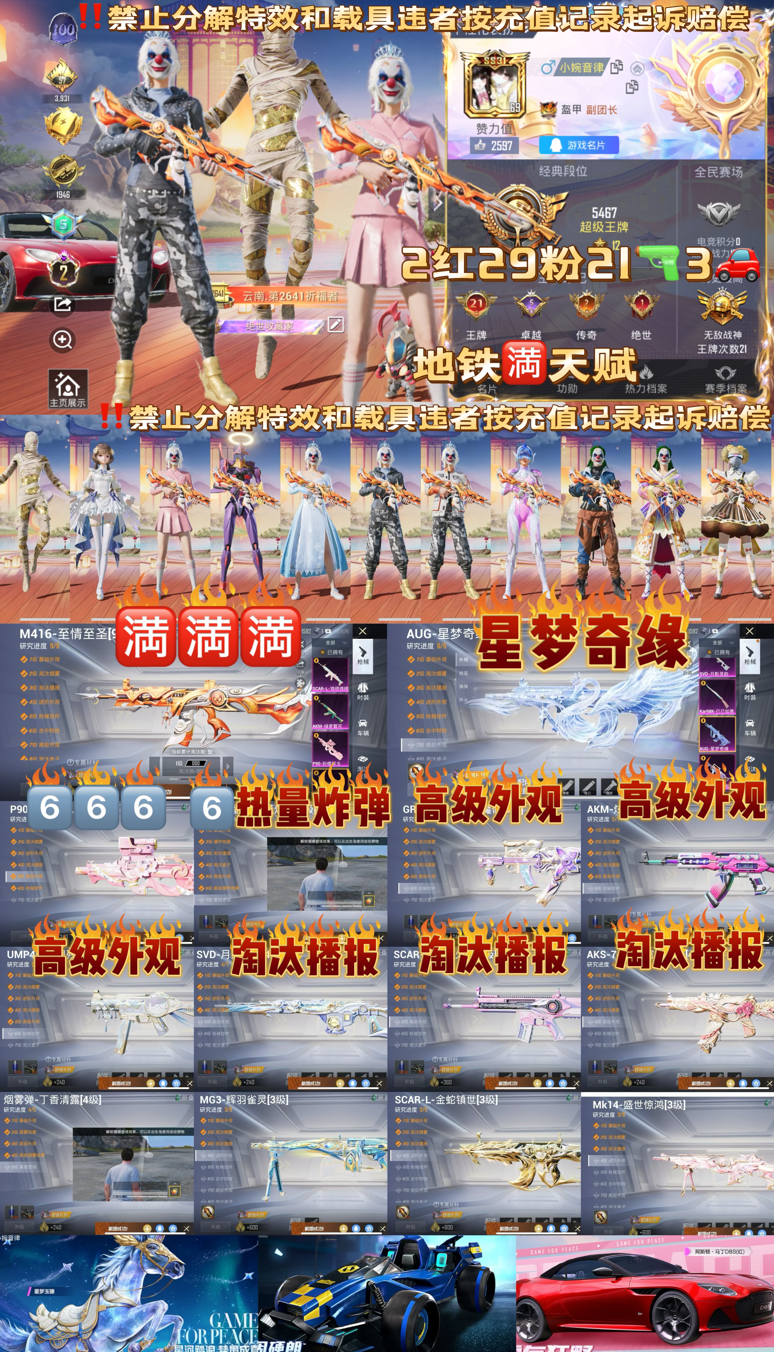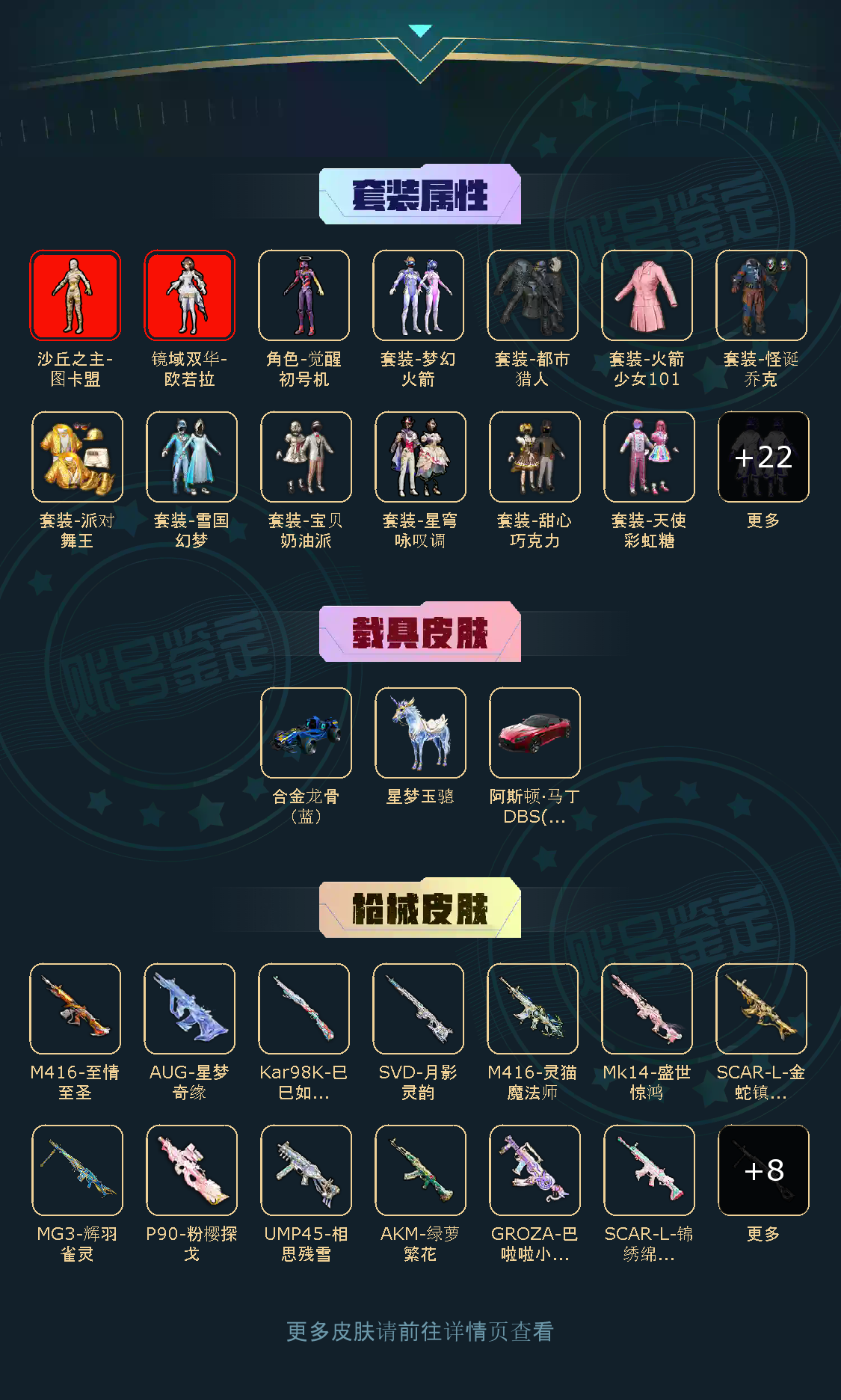 31粉,3载具,297套装,21王牌印记,无敌战神历史最高段,147593热力值 M416-灵猫魔法师/SCAR-L-梦幻火箭/AUG-星梦奇缘/AKM-绿萝繁花/M416-风花雪月/GROZA-巴啦啦小魔仙/M762-激战未来/AKM-炫紫旋律/SCAR-L-锦绣绵绵/M416-至情至圣/SCAR-L-金蛇镇世/Mk14-盛世惊鸿/MG3-辉羽雀灵/DP-28-豹影疾电/P90-粉樱探戈/AKS-74U-星穹咏叹调/UMP45-相思残雪/烟雾弹-丁香清露/破片手榴弹-热量炸弹/Kar98K-巳巳如意/SVD-月影灵韵/阿斯顿·马丁DBS(红)/合金龙骨(蓝)/星梦玉骢/
