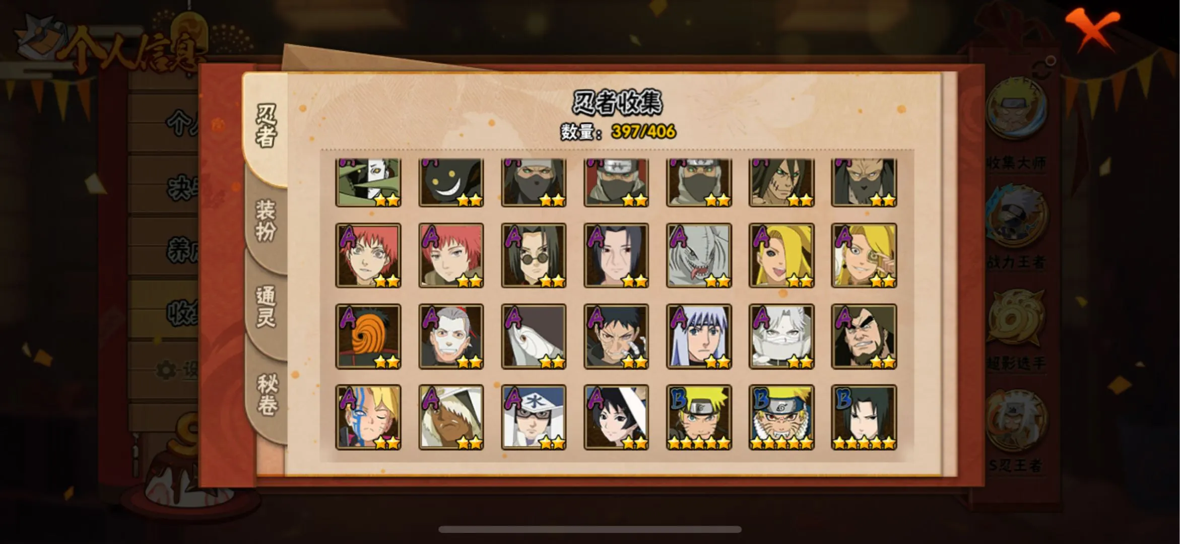 仙人自来也 纲手 波风水门 百战水门 猿飞日斩 千手柱间 宇智波斑 宇智波鼬 舞之自来也 大蛇丸 百战大蛇 秽土四代 秽土三代 秽土长门 仙人兜 黄猿九喇嘛鸣人 紫狗永恒佐助 樱婊忍战樱 秽土鼬 普通自来也 百豪纲手 死门凯 二代扉间 秽土二代 秽土初代 秽土柱间 白面具 须佐卡卡西 小胡子鬼灯幻月 雷影 土影 无 佩恩 百战佩恩 青年柱间 创立初代 秽土斑 青年斑 解斑 须佐止水 虎皮 破面带土 红夜带土 罗砂 秽土三代风影 忍战雷影 三代雷影 金角银角 秽土半藏 忍战大野木 小土豆 天道超 大筒木桃式 大筒木金式 钢铁之躯凯 桀骜之刃阿斯玛 狂野之鲨鬼鲛 飞段 黑飞段 百豪樱 忍战李 大卡卡西 五代水影照美冥 宇智波鼬 仙鸣 九尾查克拉鸣人 鹰佐 奇拉比 青年艾 半蛇兜 晓蛇 新春鼬 面麻 须佐佐助 疾风咒印佐助 忍战宁次 忍战天天 最终章雏田 幻容卡卡西 神卡 忍战卡卡西 泳装卡卡西 忍战凯 青春哥 惊门凯 爱情哥 新春止水 新春水门 青年水门 青水 新春我爱罗 泳装照美冥 侠隐照美冥 侠隐纲手 侠隐兜 漂泊再不斩 漂泊佩恩 漂泊二代 漂泊小南 漂泊佩恩 三船 青年三船 青年长门 泳装南 新春南 黑绝 新春大蛇丸 晓创生角度 晓创生蝎 晓创生飞段 泳装鼬 鲛肌融合鬼鲛 新春迪达拉 秽土迪达拉 恶灵之影飞段 暴怒带土 忍战黄土 卑留呼 桃博 黑土
