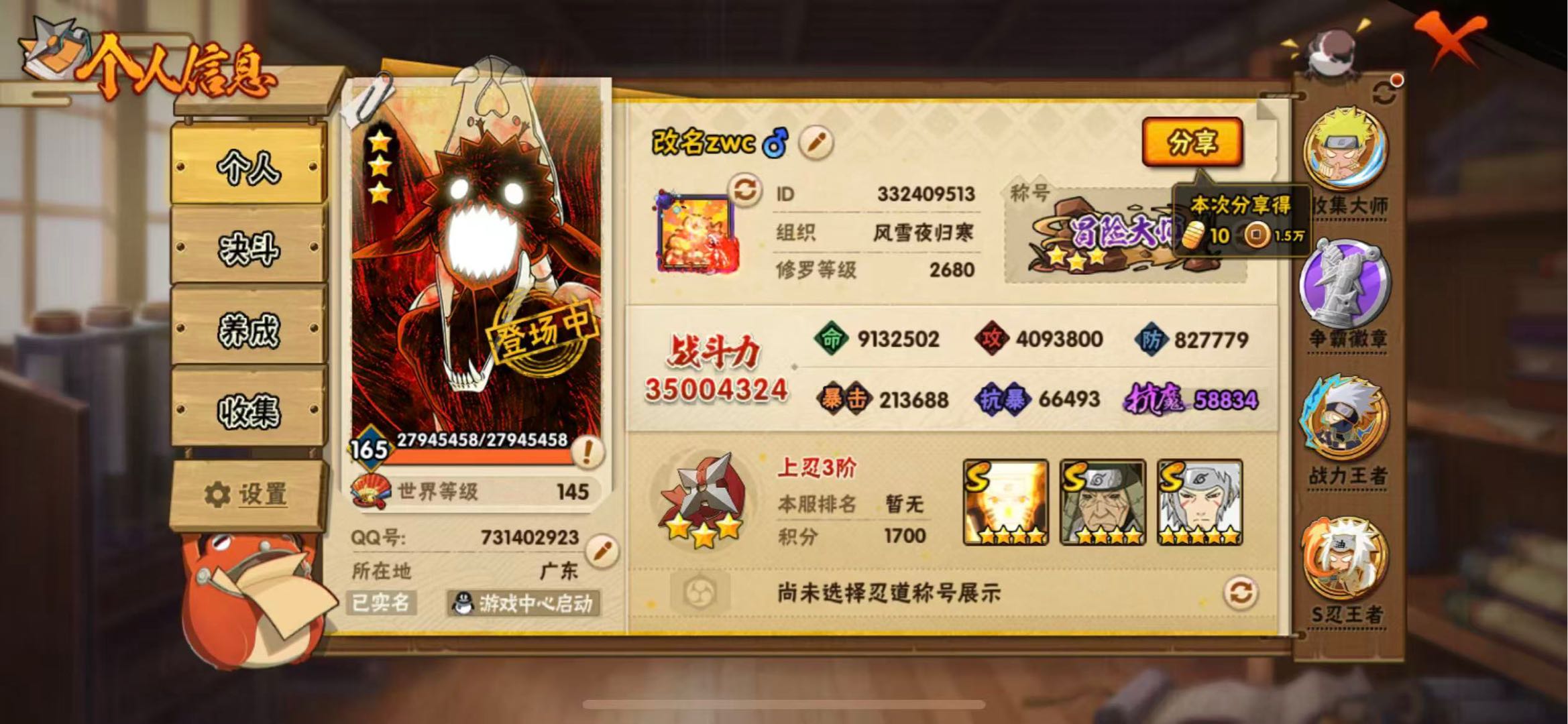 【苹果】 巳月已秒🐲五影斑🐲侠隐佐助🐲漂泊带土🐲3650万战力🐲402忍者爽玩不落