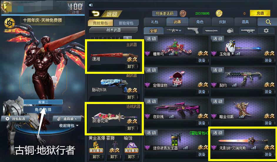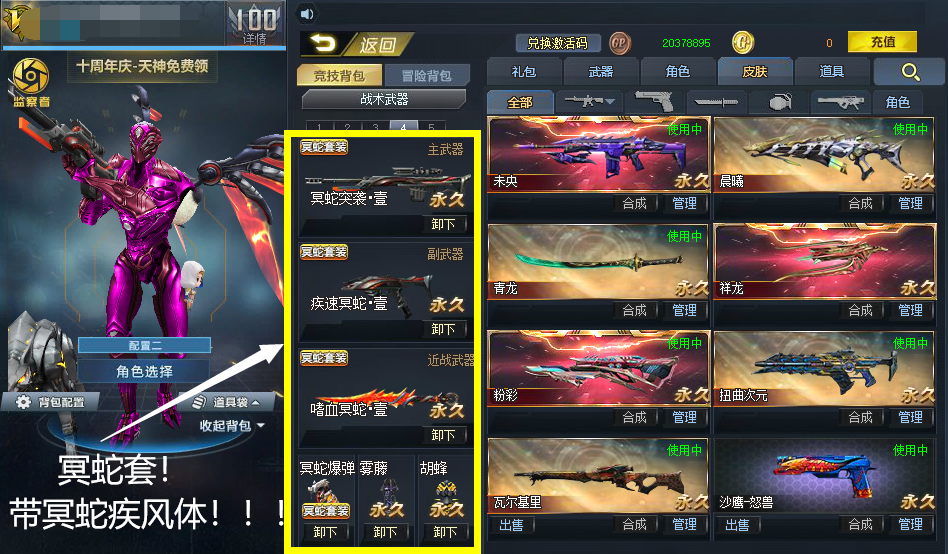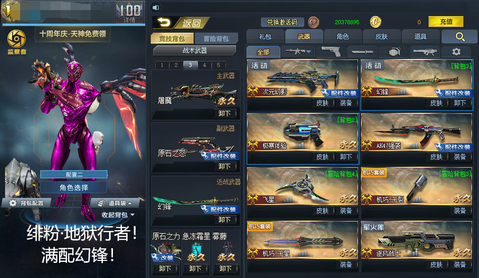 绯粉+古铜地狱行者!冥蛇套【冥蛇疾风体!】未央影魔!无限ex!血魔!潇湘!花束!连城幽冥伏虎裂隙行者弧光核子裂变盖亚终末之弩,末世等等配件武器
