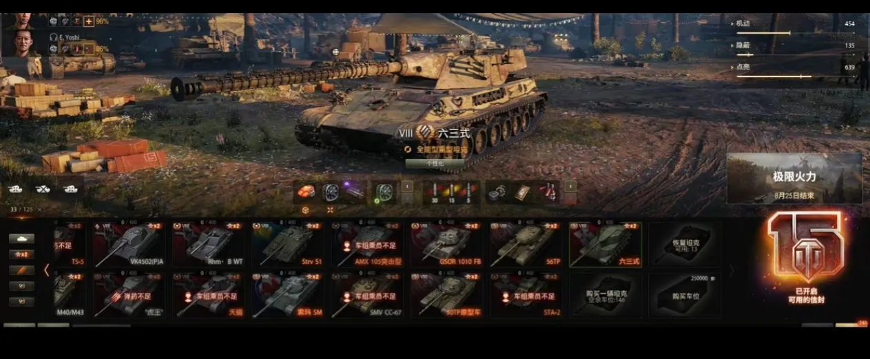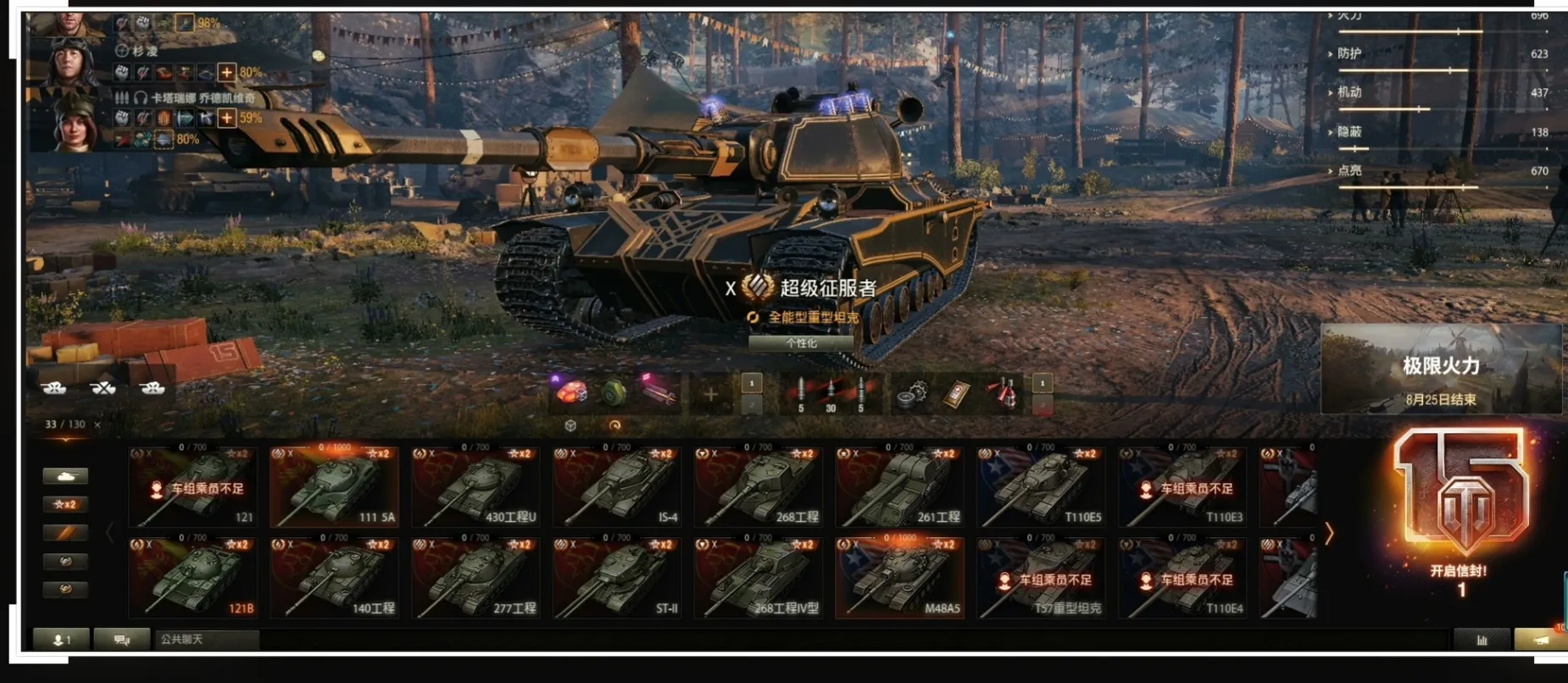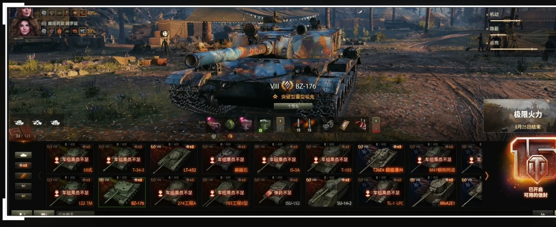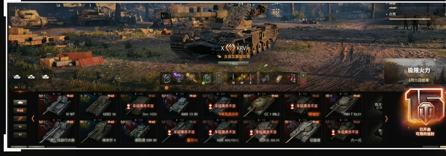 35台10级,新增183和4005。超征,轮子,牛头人,豹一,115a。坦克营地可以用,其他盒子禁用