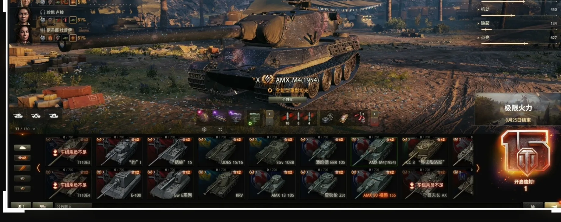 注意事项:1,进入游戏后,如果车辆情况不符。那是因为前面的玩家筛选了自己玩的坦克,其他的隐藏了。坦克显示栏,左下角小坦克标志,点进去把所有系别和级别选上,坦克就全部出来了。
