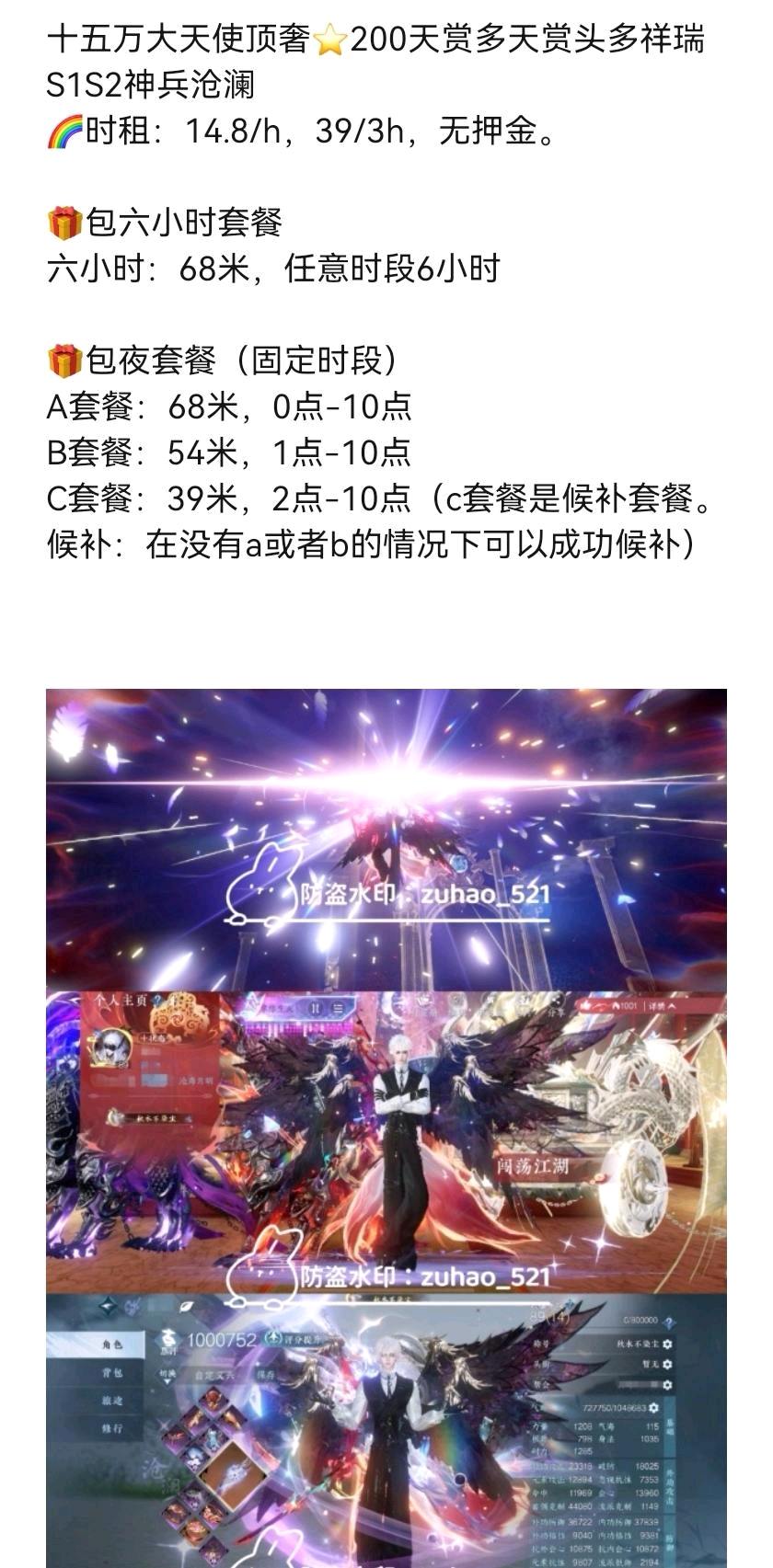 租赁押金:0元(不得使用外挂等第三方软件,违反将会扣除押金)