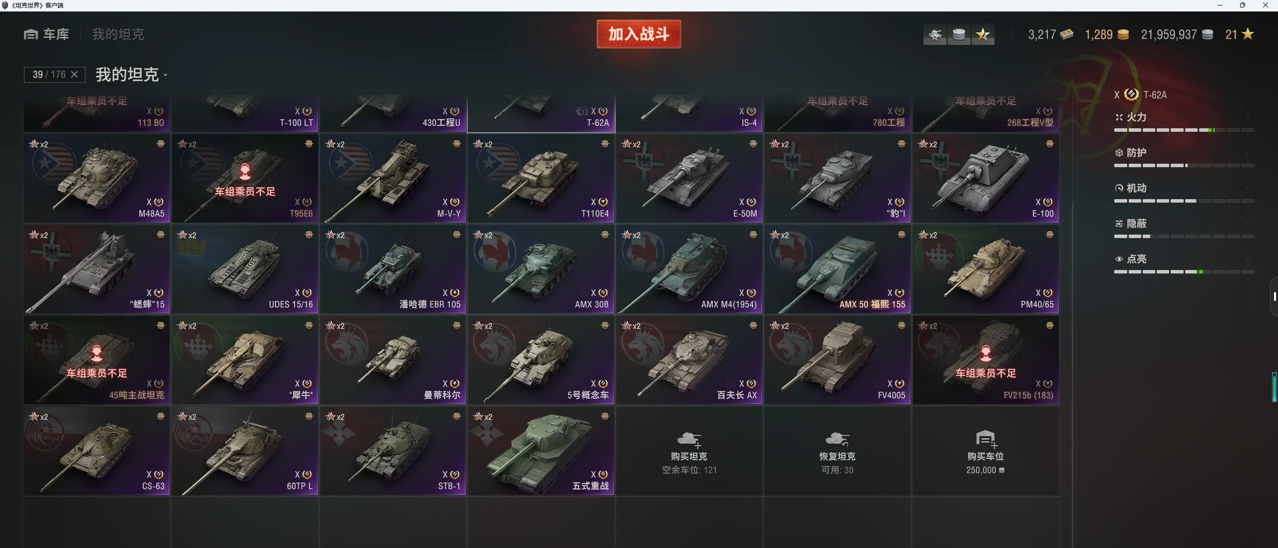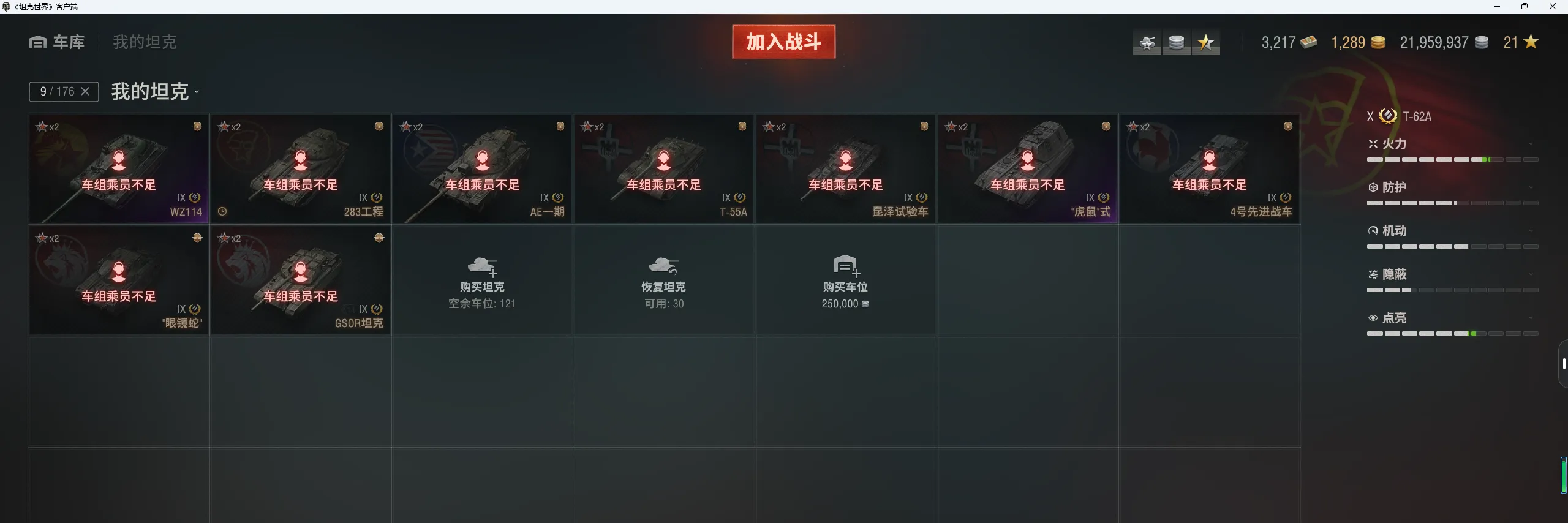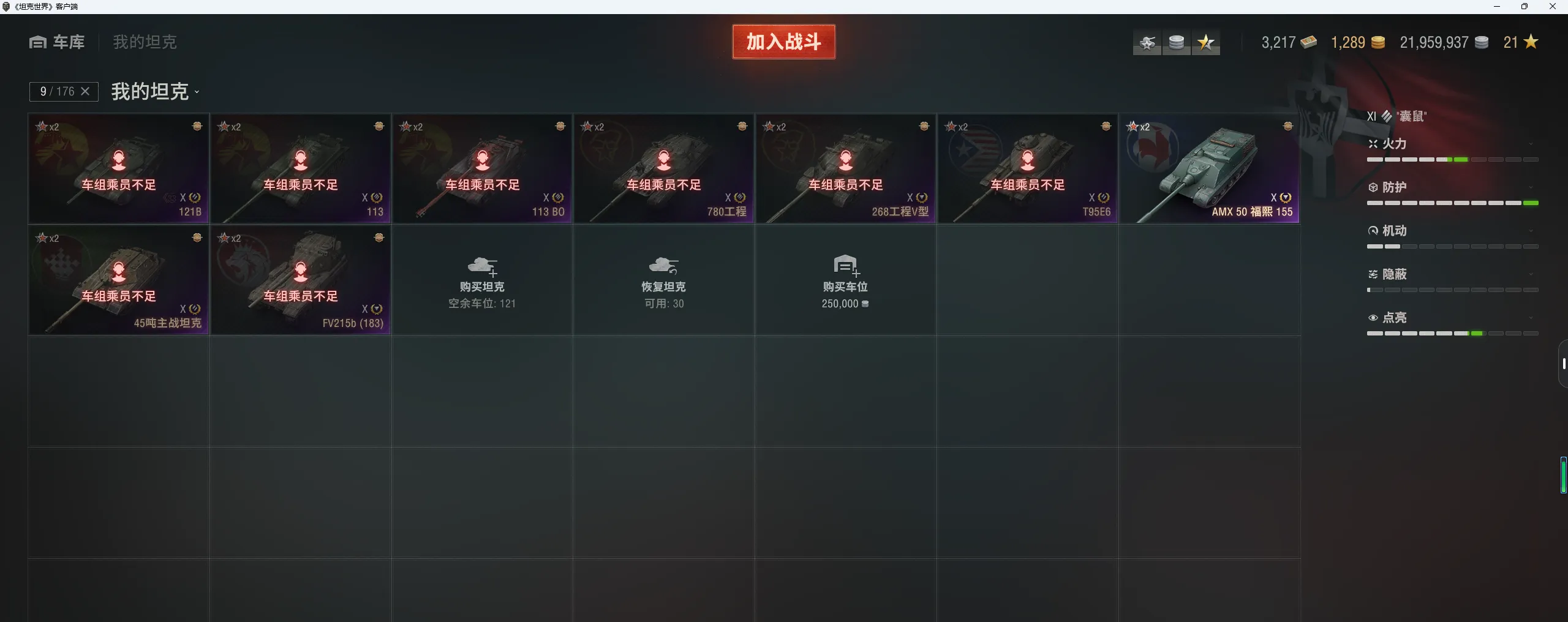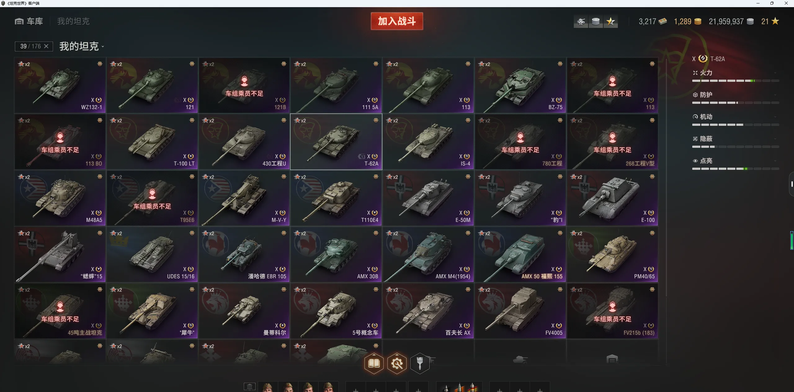 注意事项:1,进入游戏后,如果车辆情况不符。那是因为前面的玩家筛选了自己玩的坦克,其他的隐藏了。坦克显示栏,左下角小坦克标志,点进去把所有系别和级别选上,坦克就全部出来了。