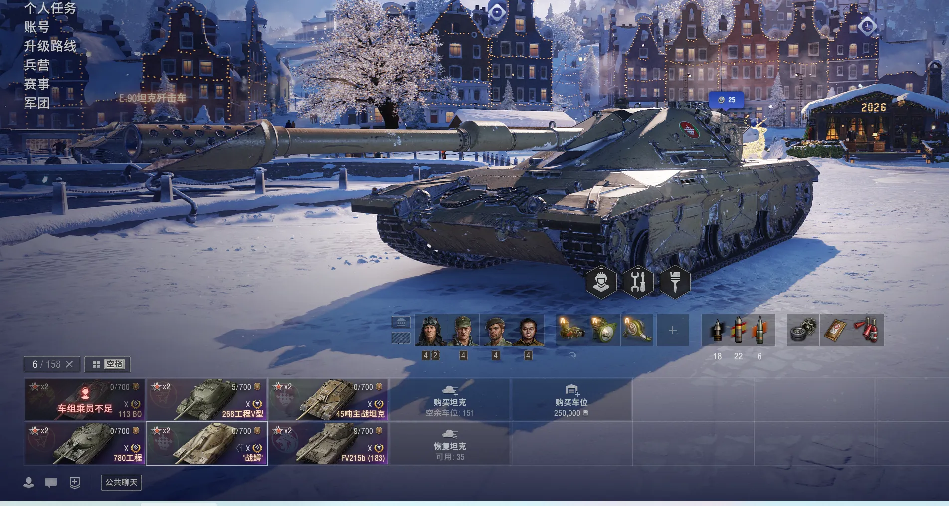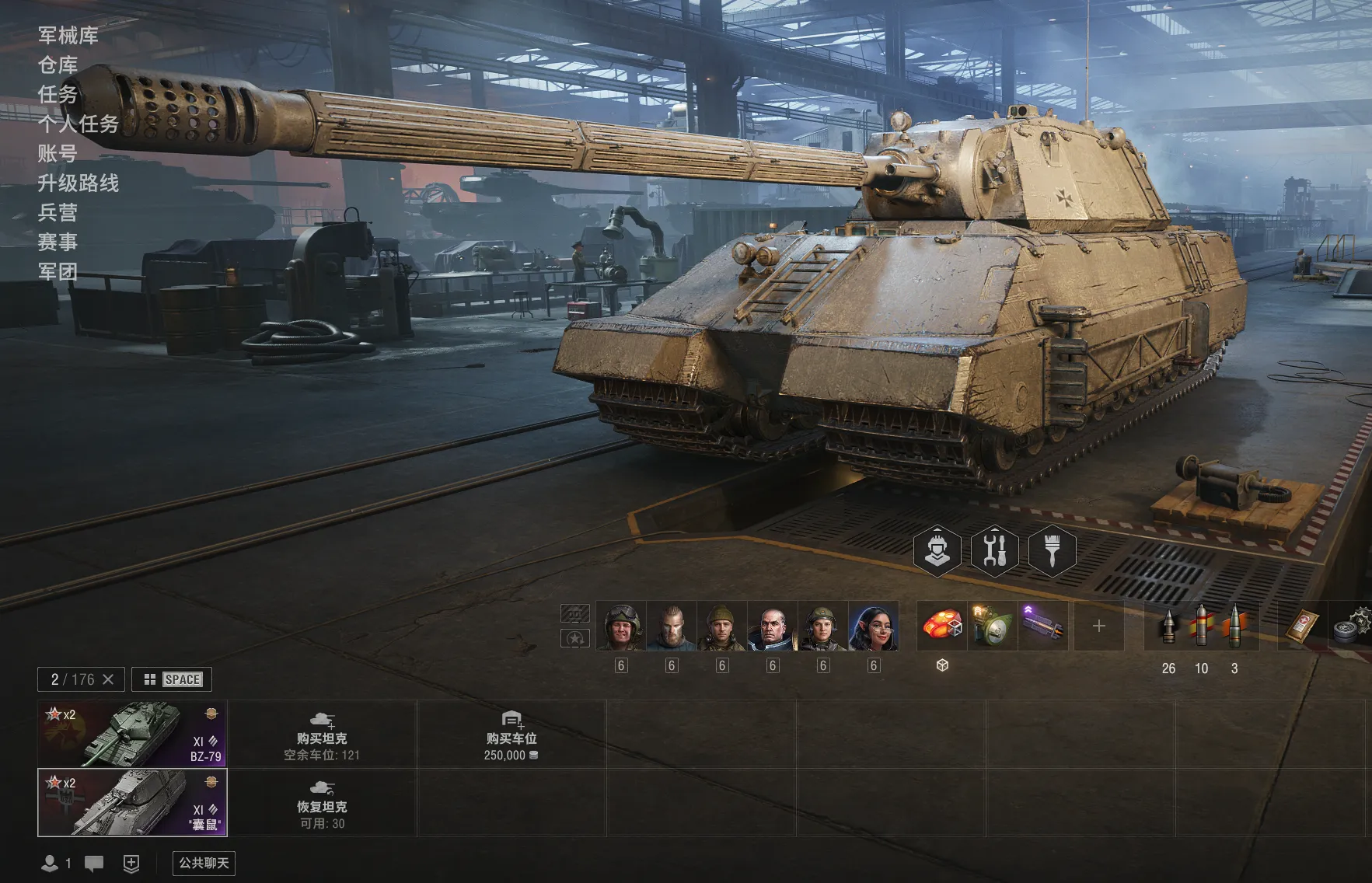 11级2台:BZ-79,囊鼠。箱子战鳄,10级39台10金9台:45吨780260。坦克营地可以用