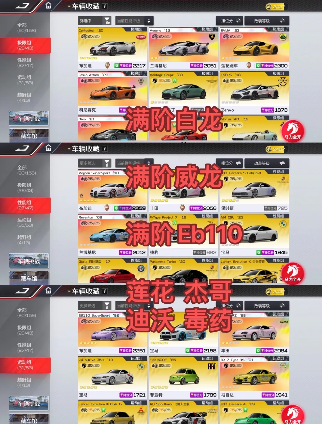 【安卓】 15幻神/布加迪家族/各组都有头车✅满阶白龙/威龙/eb110✅满阶牛魔王✅莲花/杰哥/毒药/迪沃