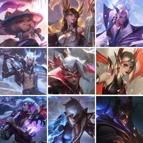 禁止排位/联盟五区/无畏先锋/1000+皮36神话至臻梅尔佐伊皇子塞拉斯拉克丝等