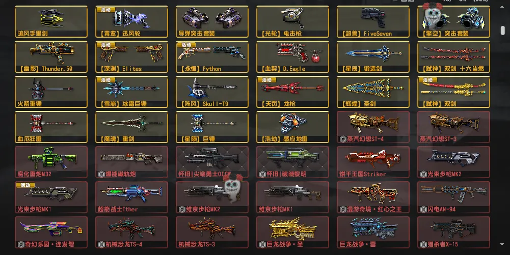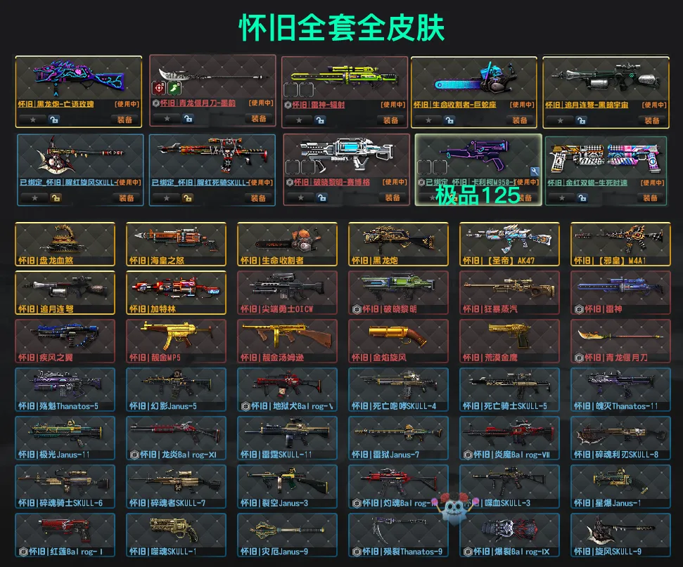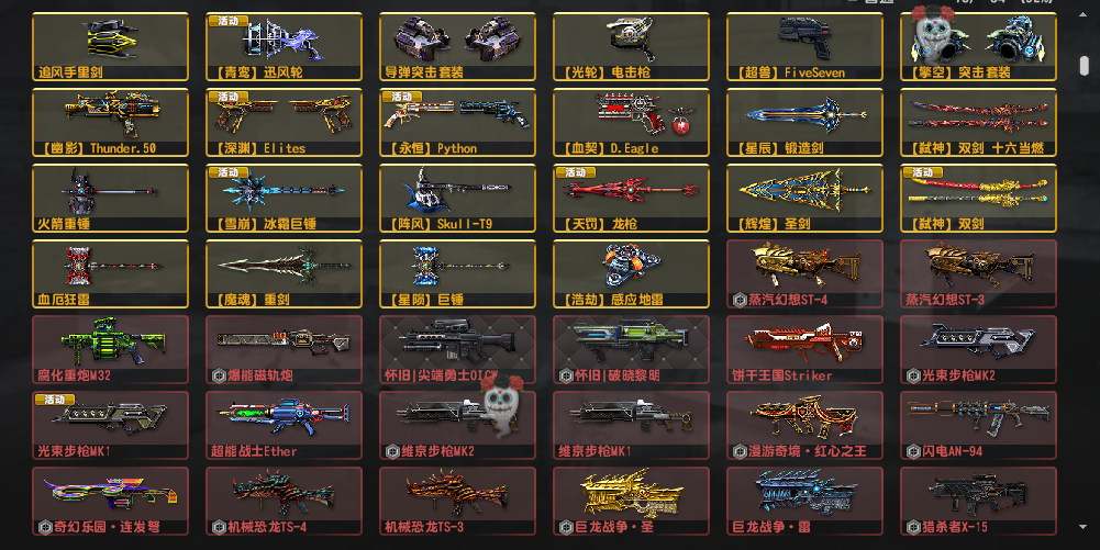 青称●白蓝龙神●神威白洞●全套怀旧关刀雷神邪黄炮斧电锯●血魔女●神鬼开天●维京套●4闪电●多赛季6配