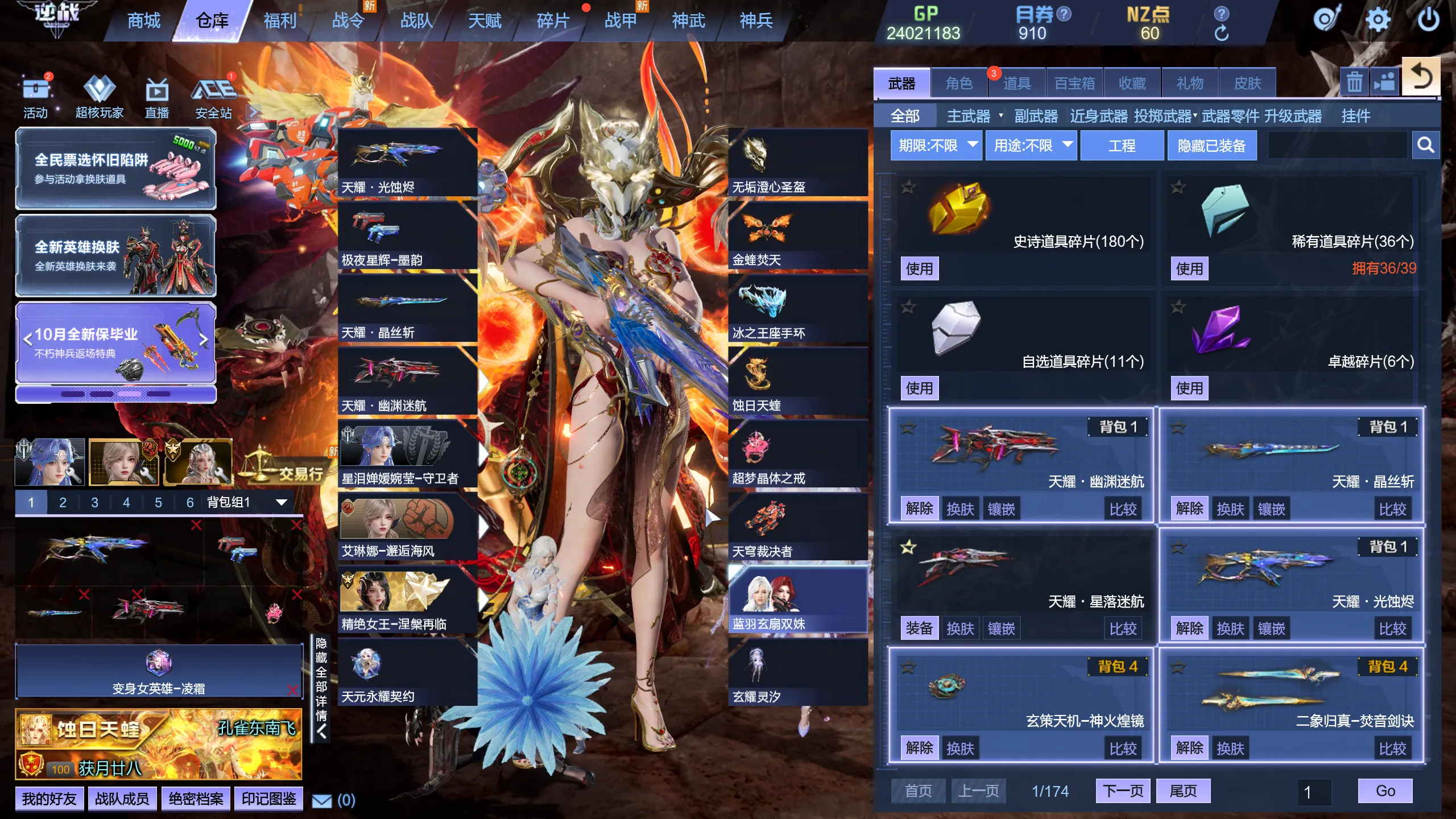 25.11.3新增:英雄焚霄-玄烬 叠影臂铠星桓阵图 蓝羽玄扇双姝 腾风无尽星河改 战甲转换器