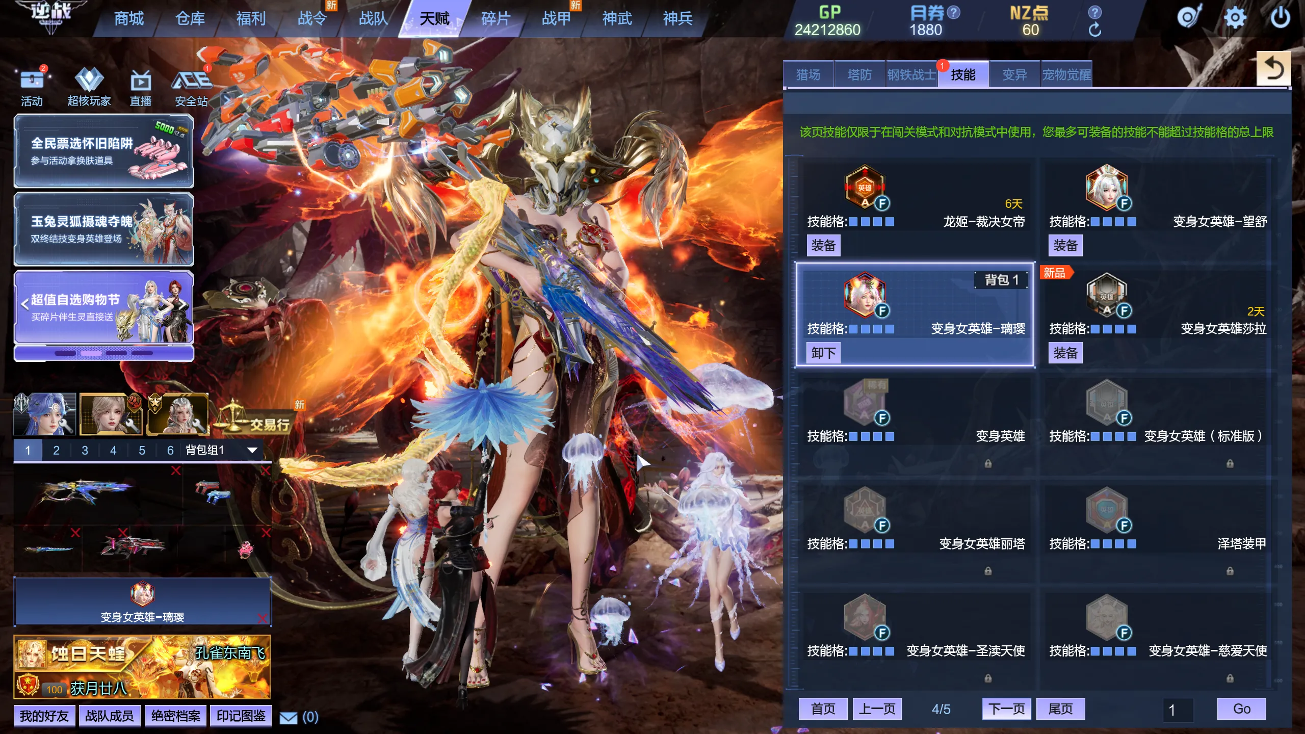 25.8.12新增:精绝女王-涅槃再临 英雄焚霄 英雄璃鸢-金翎,天耀套五核心