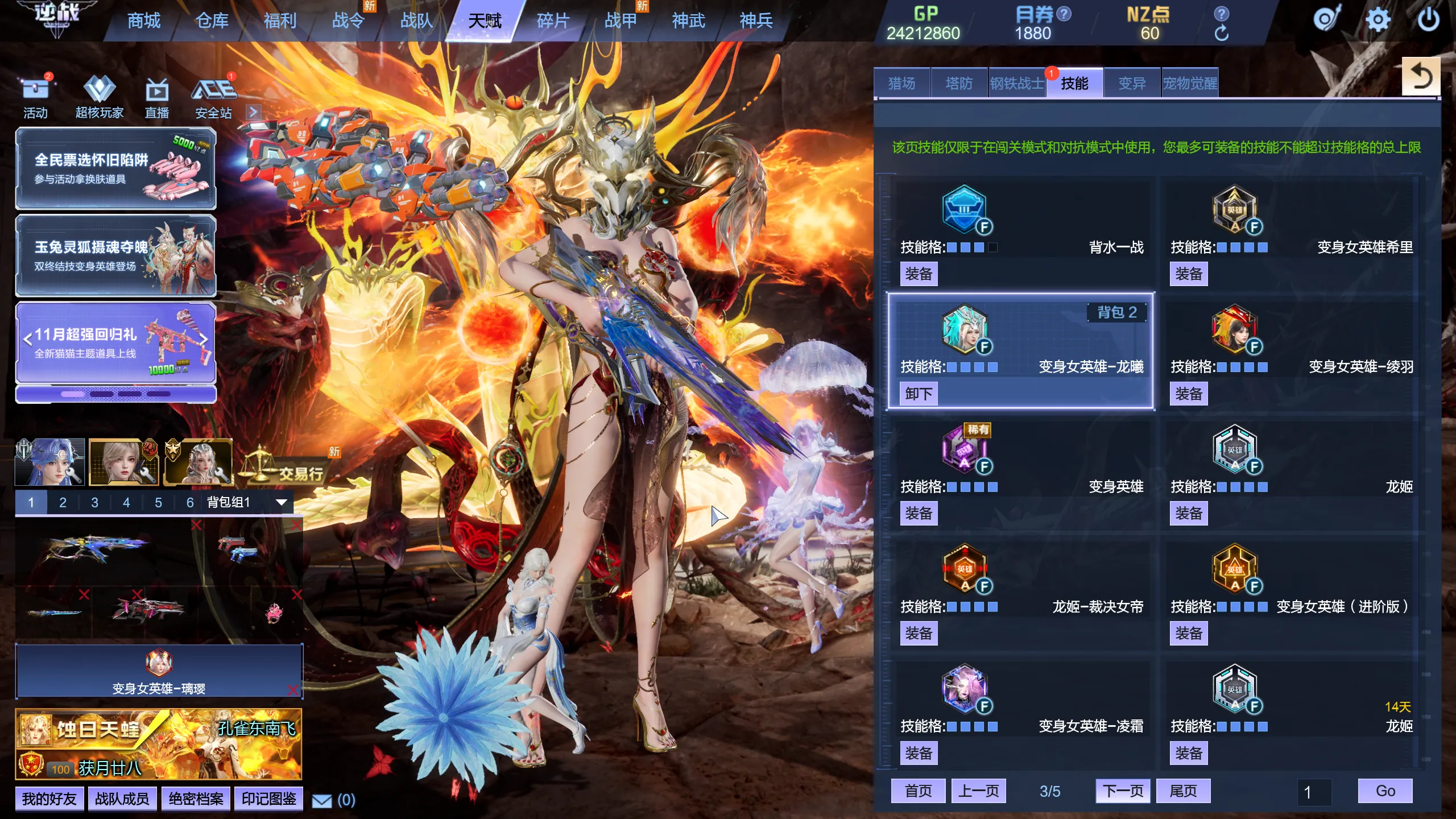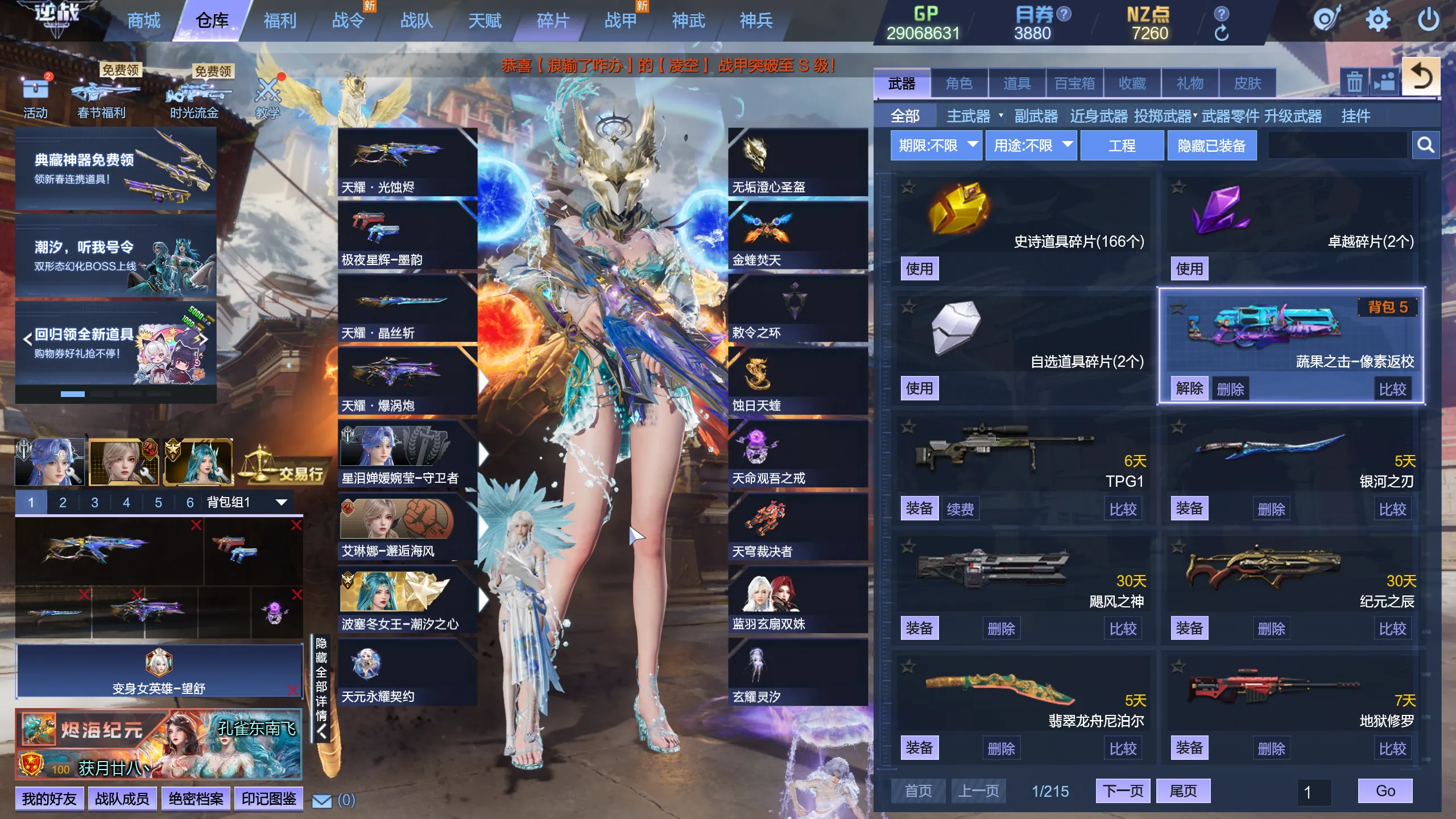 2025.3.1新增:臂铠龙宫秘境,英雄海龙王,英雄龙太子,英雄画灵➕皮肤,英雄碧湖,S战甲白纱飞羽+双再生,