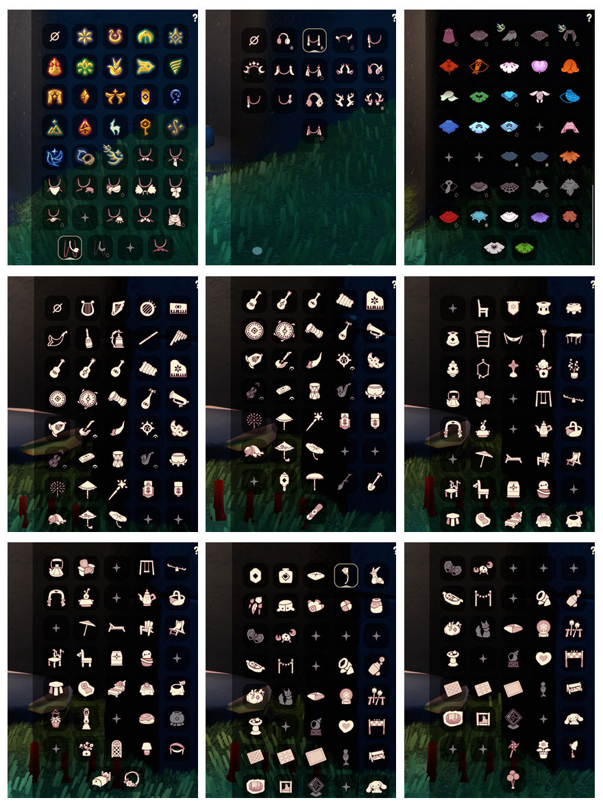 礼包:祥云裤子,雪怪靴,阔腿牛仔裤,优雅领巾,水母肩饰,尾巴,王子围巾,星球斗,tgc,星月皇冠,异彩神鹿头饰,彩虹耳钉,鹿角,枯角,雪花头饰,贝壳头饰,小兔子,大耳狗耳朵,四叶草发饰,小橘子,锦鲤头饰,福娃套装,暖冬绒帽,蝙蝠斗,巫师帽,绊爱套装,雪花球,篝火点心,大耳狗抱枕,小狐狸,爱之船,秋千,跷跷板,茶桌,餐桌,野餐垫,欧若拉之声,新年红伞,夏日阳伞,睡莲雨伞,音韵吉他,雏鸟之琴,凯旋手碟,海龟斗篷,蜘蛛斗,瑞雪斗篷,白雪斗篷,流星斗篷,年年有余套装,粽叶斗篷