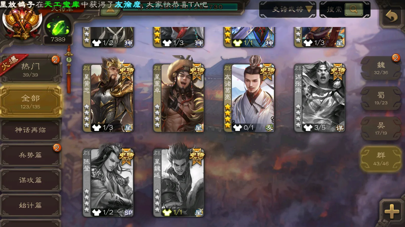 【全平台】 【锦鲤有卡】三卡124史诗崔芙势国渊势辛宪英势魏延至尊皮(谋孙策钟会十常侍杜预)双动刘焉