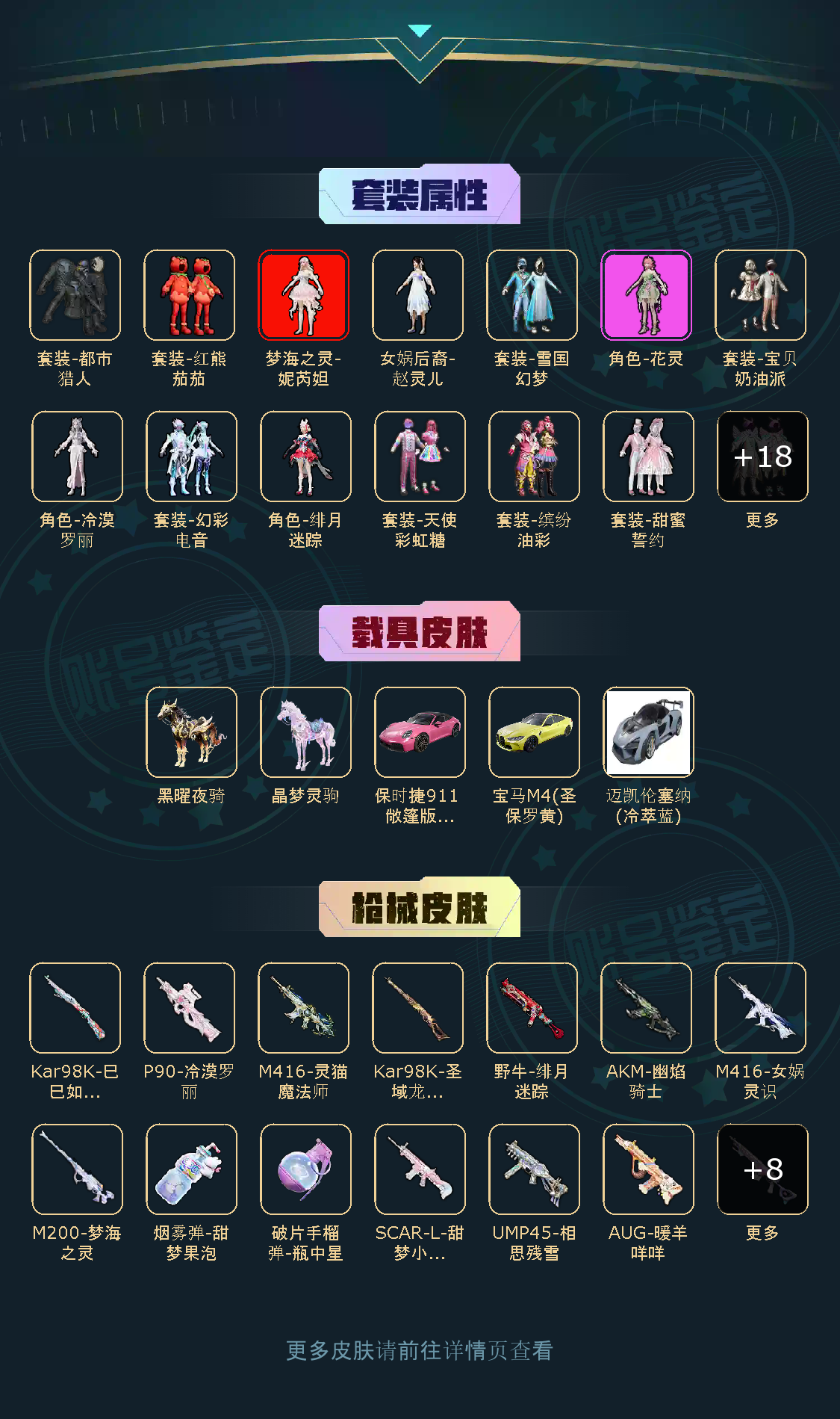 29粉,5载具,206套装,17王牌印记,绝世王牌24星历史最高段,102731热力值 撬棍-永恒法杖/M416-灵猫魔法师/SCAR-L-甜梦小狐/AKM-幽焰骑士/M416-心之恋语/M416-女娲灵识/AUG-暖羊咩咩/AKM-星际浪客/M762-甜蜜誓约/Mk14-甜梦熊击/MG-36-沧焰双生/DP-28-豹影疾电/野牛-绯月迷踪/P90-冷漠罗丽/UMP45-相思残雪/破片手榴弹-瓶中星球/烟雾弹-甜梦果泡/Kar98K-圣域龙灵/Kar98K-巳巳如意/Kar98K-未来歌姬/M200-梦海之灵/宝马M4(圣保罗黄)/保时捷911 敞篷版(星珀红)/迈凯伦塞纳(冷萃蓝)/黑曜夜骑/晶梦灵驹/