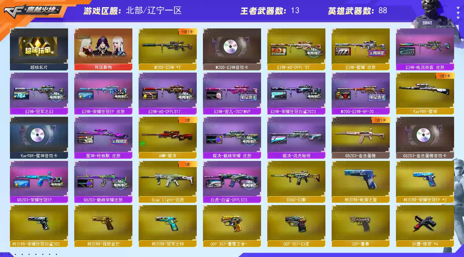 1)柯尔特*6 = 柯尔特-百战金芒 | 柯尔特-冠军之特 | 柯尔特-荣耀世冠EP*2 | 柯尔特-荣耀世冠白鲨2023 | 柯尔特-电竞之星