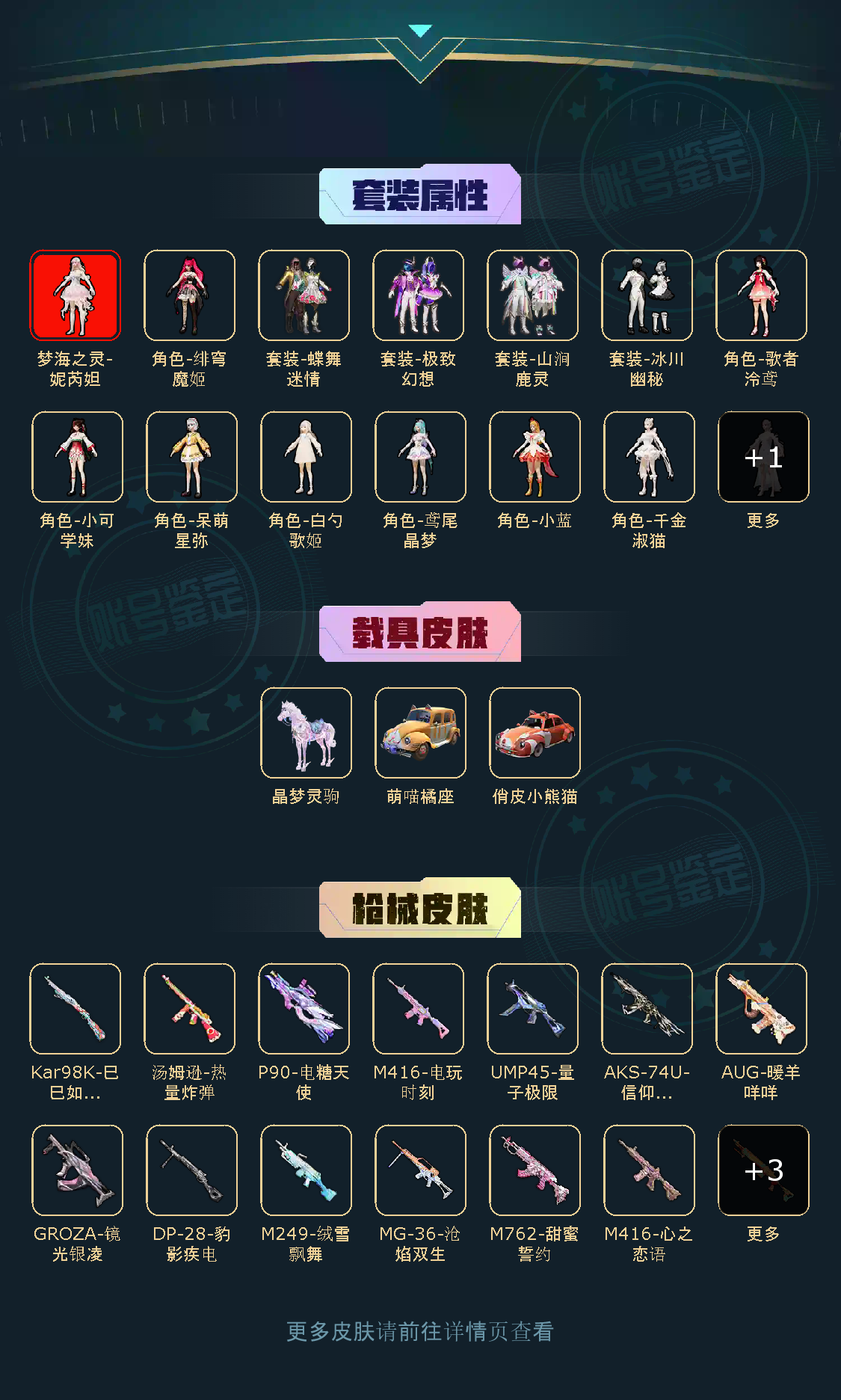 【稀有资产】梦海之灵-妮芮妲[3级]/角色-千金淑猫/破片手榴弹-粉粉猫爪/AUG-暖羊咩咩/M416-电玩时刻/M416-心之恋语/烟雾弹-猫咪绅士/套装-暗夜魅影/套装-迅捷狂鲨/套装-晶辉守护/套装-软软马卡龙/套装-青涩年华/角色-敖闰/角色-都市丽猫/角色-银尘/角色-白光莹