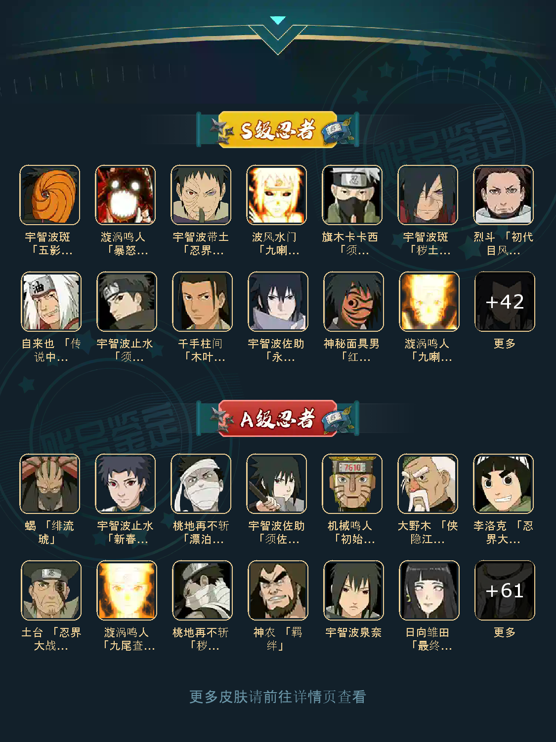 侠隐大野木🔥53S🔥九喇嘛水门🔥传说自来也🔥机械鸣人🔥烈斗🔥须佐卡卡西🔥永恒佐助
