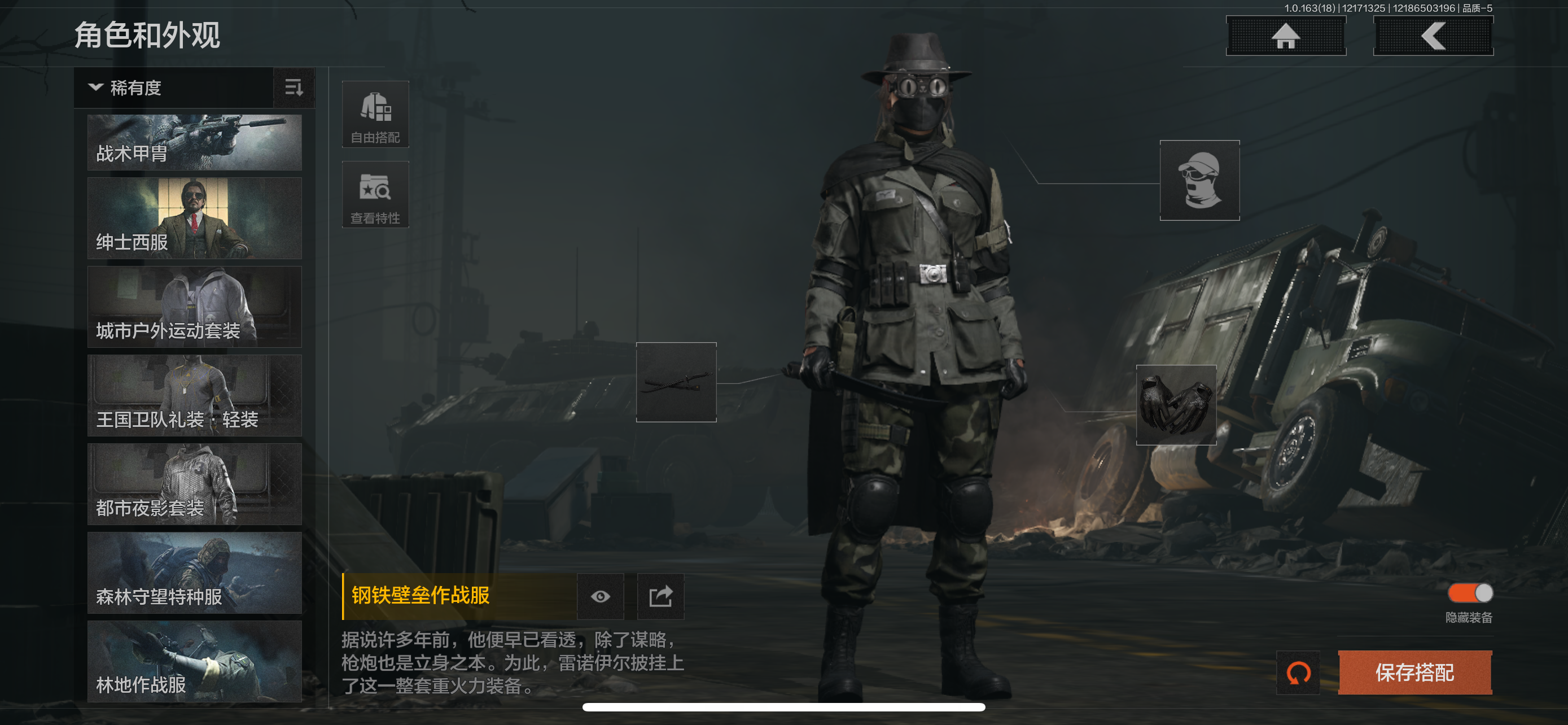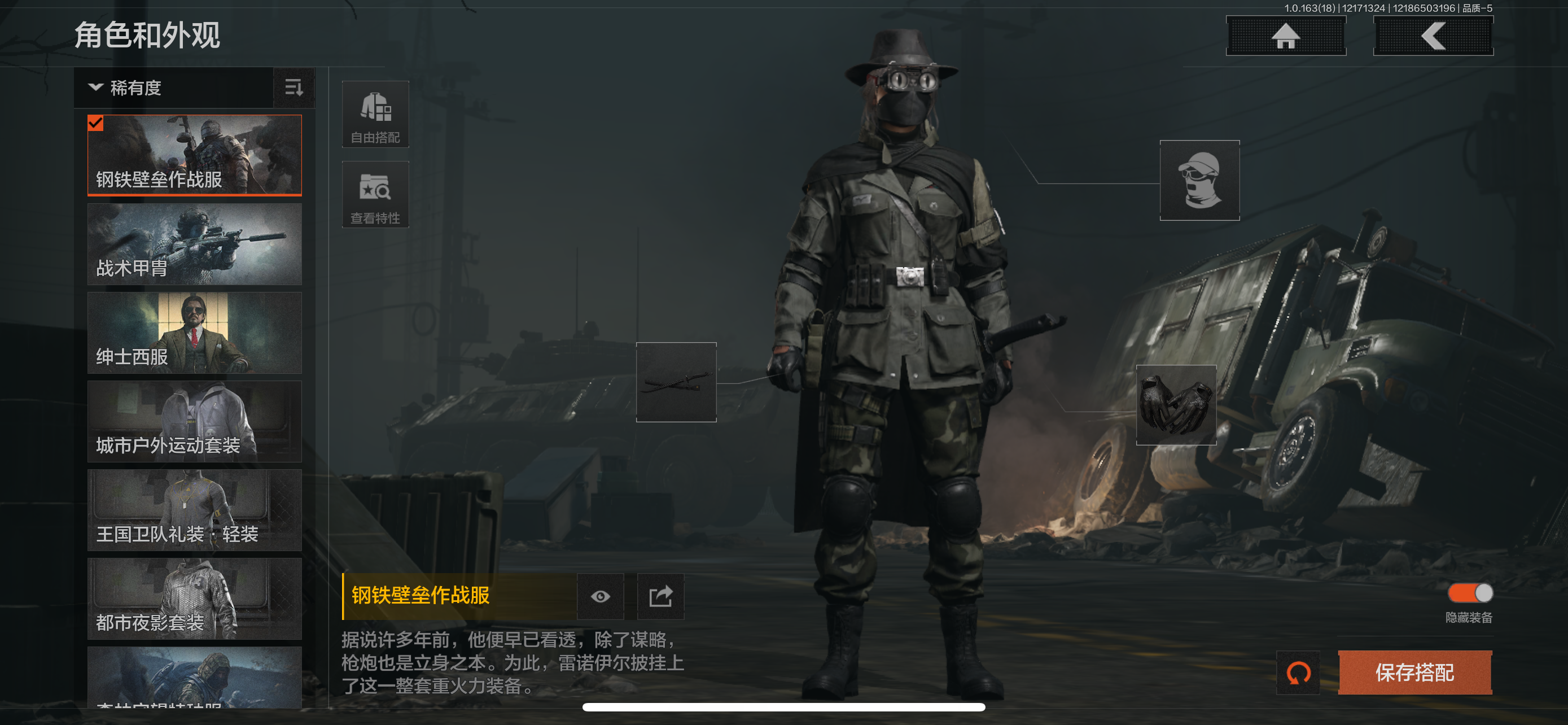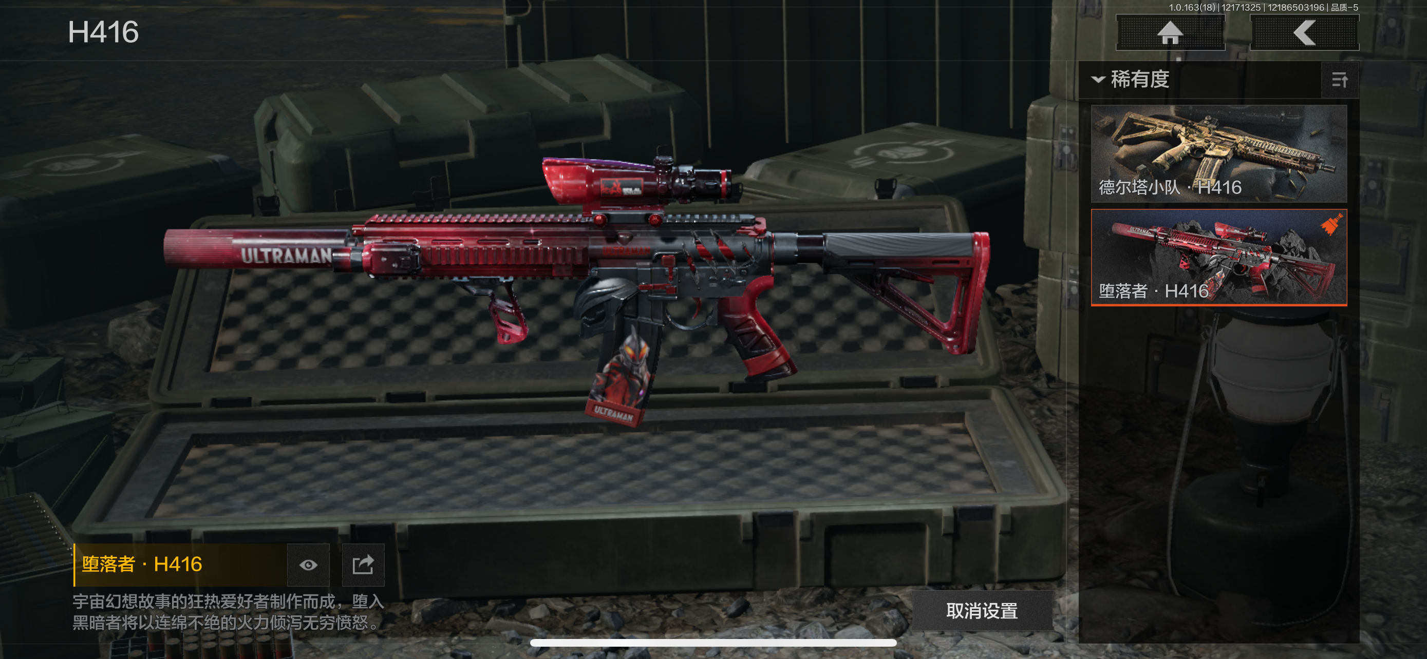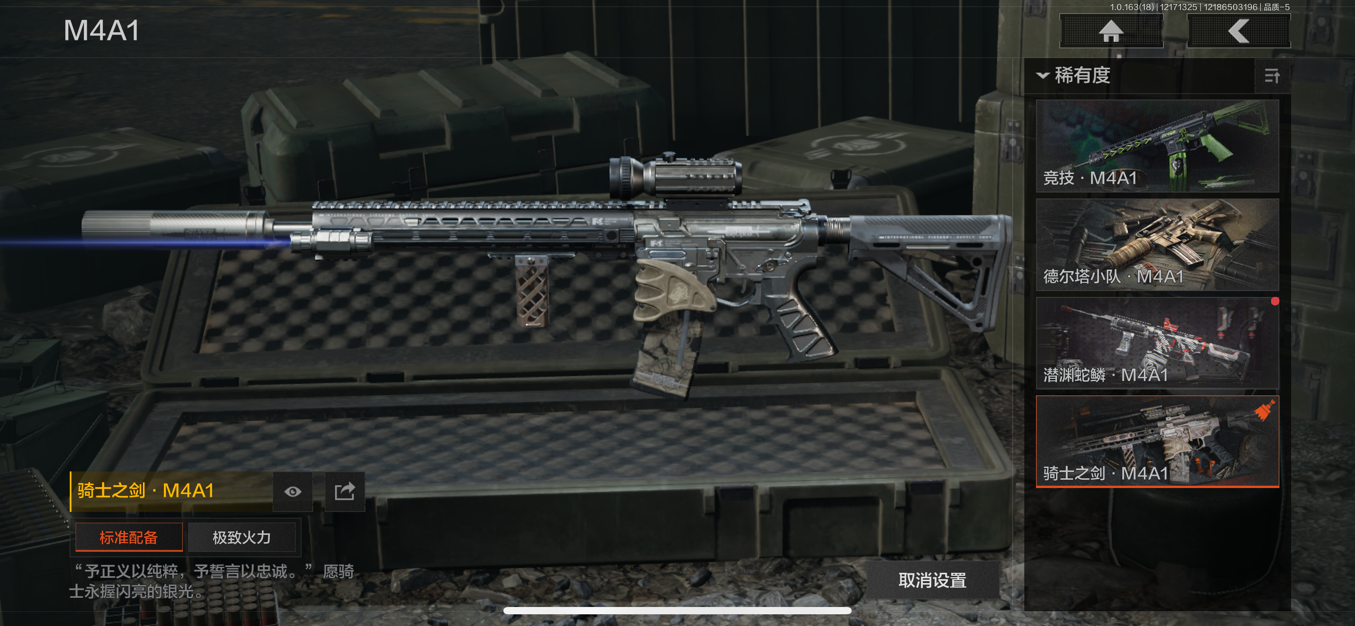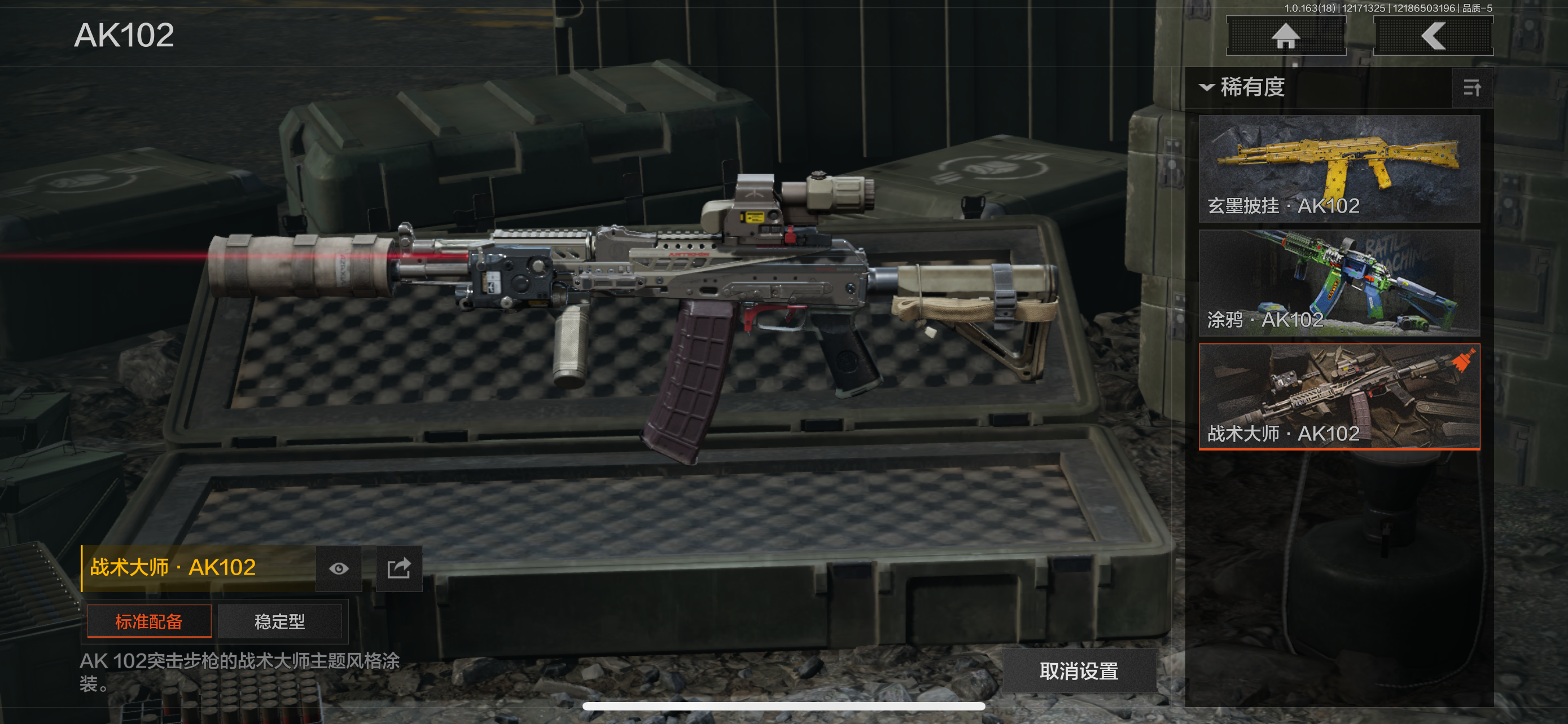 30级,历史最高段位:暗区传说【近战武器】:涂鸦利刃,胜利军刀,明刀绣春,冬日冰镐,裁决手杖剑,鲨鱼刀,突击匕首,工兵铲,来战开山刀;【角色皮肤】:钢铁壁垒作战服,战术甲胄,绅士西服,城市户外运动套装,王国卫队礼装轻装,都市夜影套装,森林守望特种服,林地作战服;【手套】:裁决手套;【突击步枪】:包络战术AKM,历战AKM,猩红抓痕AKM,潜渊蛇鳞M4A1,竞技M4A1,德尔塔小队M4A1,骑士之剑M4A1,战术大师FAL,历战FAL,真实之眼FAL,堕落者H416,德尔塔小队H416,竞技MDR,鱼跃丹青DTMDR,玄墨披挂MDR,战术大师AK102,玄墨披挂AK102,涂鸦AK102,来战AK74N,战术大师AK74N,山地伪装AK74N,竞技数码AK74N,最后防线AKS74U,龙影AKS74U,脏脏AKS74U,竞技AUG,醒目提示F2000,秩序F2000,炎夏浪花AR57,战术大师AR57,深粉玫瑰ACE31,胜利AEK,粉绒臻选AN94,虎纹Groza,正在骇入Groza,深水浴池FAMAS,青瓷涂层SCAR,绿松石数码T951,巡林客T951,青瓷涂层T951,飞鲨T951,龙威T951,黑石纹T951,森林迷彩T951,林地数码T03,虎纹T03,骑士之剑T03,森林迷彩T03,沙海AK12,北国内卫AK12,沙海MCX,典礼武备MCX,绿海猎手AR15;【冲锋枪】:竞技MP5,龙威MP5,森林迷彩MP5,火力倾泻MP5,涂鸦MPX,竞技MPX,代号天依P90,危险地带P90,洞窟遗迹UZI,滑雪季UMP45,洞窟遗迹UMP45,苏梅克UMP45,荒漠涂绘T79,沙色Vector45,山地伪装Vector9,狂怒荣耀Vector9,竞技Vector9,都市黄Vector9,龙影Suomi,战术大师Suomi沙海MP5K,青瓷涂层MP5K;【射手步枪】:猩红羽翼VSS,特维拉防卫VSS,钢铁数码VSS,山地伪装MK14,旗帜脉冲M110,全地形数码M110,黑金国际M110,绿松石数码QBU191,鱼跃丹青QBU191;【栓动步枪】:白色丧钟莫辛,历战AR30,战术大师AR30,深粉玫瑰SJ16,战术大师SJ16,骑士之剑SJ16,猩红抓痕M24,天猫M24;【轻机枪】:秘域鎏金RPK16,战术大师RPK16,多边棱彩M249,虎纹M249,猩红抓痕M249;【霰弹枪】:特维拉防卫M870,玄墨披挂MP133,沙海S12K,胜利S12K,醒目提示S12K,危险地带S12K,沙海USAS12,无畏USAS12,真实之眼SPR310,现代化SPR310;【卡宾枪】:苏梅克SKS,沙海Mini14,滑雪季BM59,虎纹BM59,沙海SVTU;【手枪】:碳黑M9A3,咨询G18C,涂鸦G18C,黑石纹G18C,青瓷涂层T05,水蓝F57,深潜F57,猩红抓痕M300,灰白回纹M300,碳黑M300;