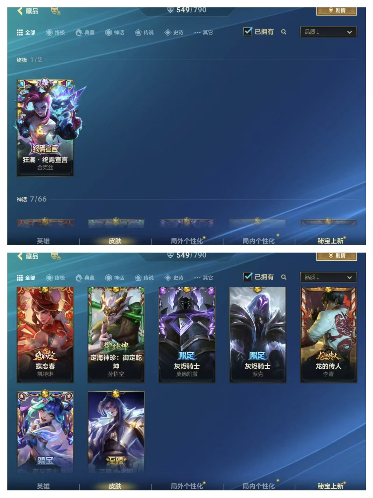 【苹果】 【允许排位】【魂】549皮✨新终极金克丝宗师可排位丨至臻永恩灰烬派克丨超多传说经典皮丨水晶玫瑰拉克丝请勿挂机