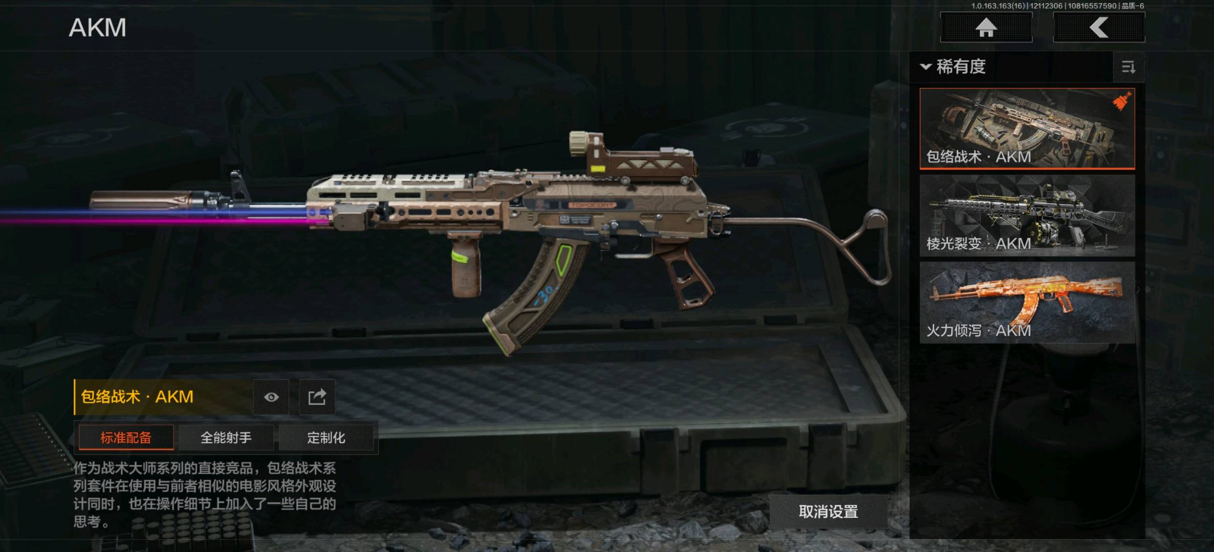 伦琴幻影FAL,包络战术AKM,战术大师AEK,旗帜AEK,战术大师AN94,旧王圣谕QBZ191,棱光裂变AKM,潜渊蛇鳞M4A1,竞技M4A1,黑金国际M4A1,竞技MDR,炎夏浪花H416,火力倾泻AUG,竞技AUG,棱光裂变AK74N,莫克斯AKS74U,最后防线AKS74U,炎夏浪花AR57,湖冰倒影ACE31,阴影AN94,饰金Groza,巡林客T951,伦琴计量T951,伦琴计量SCAR,典礼武备MCX;边缘矢量MPX,禁止访问UMP45,鱼跃丹青T85,战术大师Suomi;