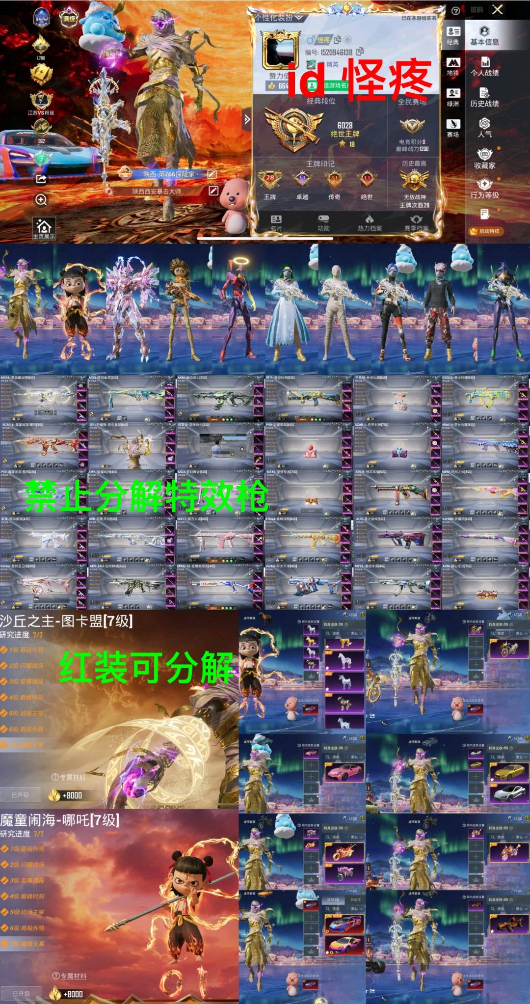 【苹果】 极品id怪疼🔥满级红装图卡蒙/哪吒/木乃伊/赤蝎小丑/至情至圣保时捷911金玛迈凯伦红蹦蹦/巧克力