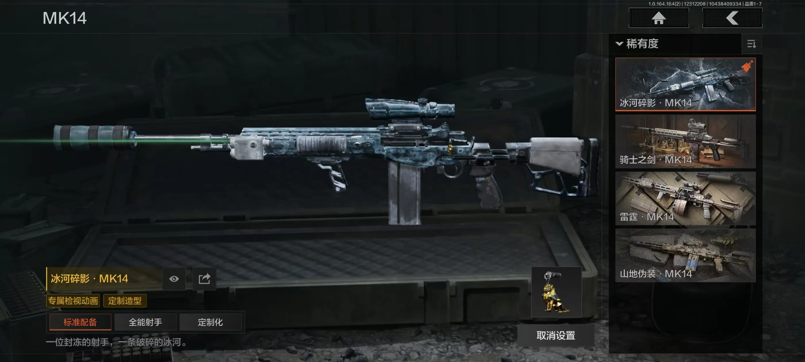 【安卓】 13金衣15金刀3手套20金枪 黑卡蒂 火绒塔莉娅 精英指虎 冰河碎影MK14 三个法老