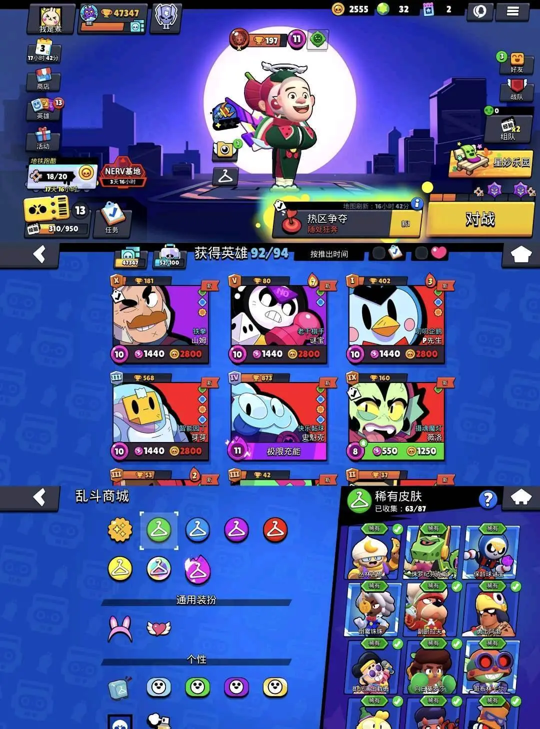 【安卓】 【92英雄 218皮肤】满级科迪琉斯 满级瑟奇 满级妮塔 满级柯尔特 满级帕姆 商人歌尔4.7w+杯