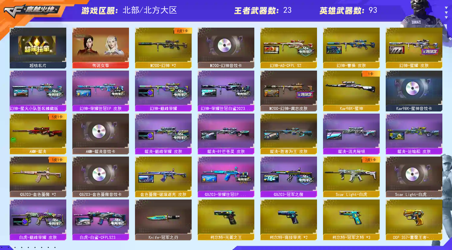 【允许排位】女帝超核玩家⚡幻神8皮ep套Ag24白鲨23带音效⚡裁决三件套⚡星神带音效⚡Qbz白虎三件套⚡3冠特