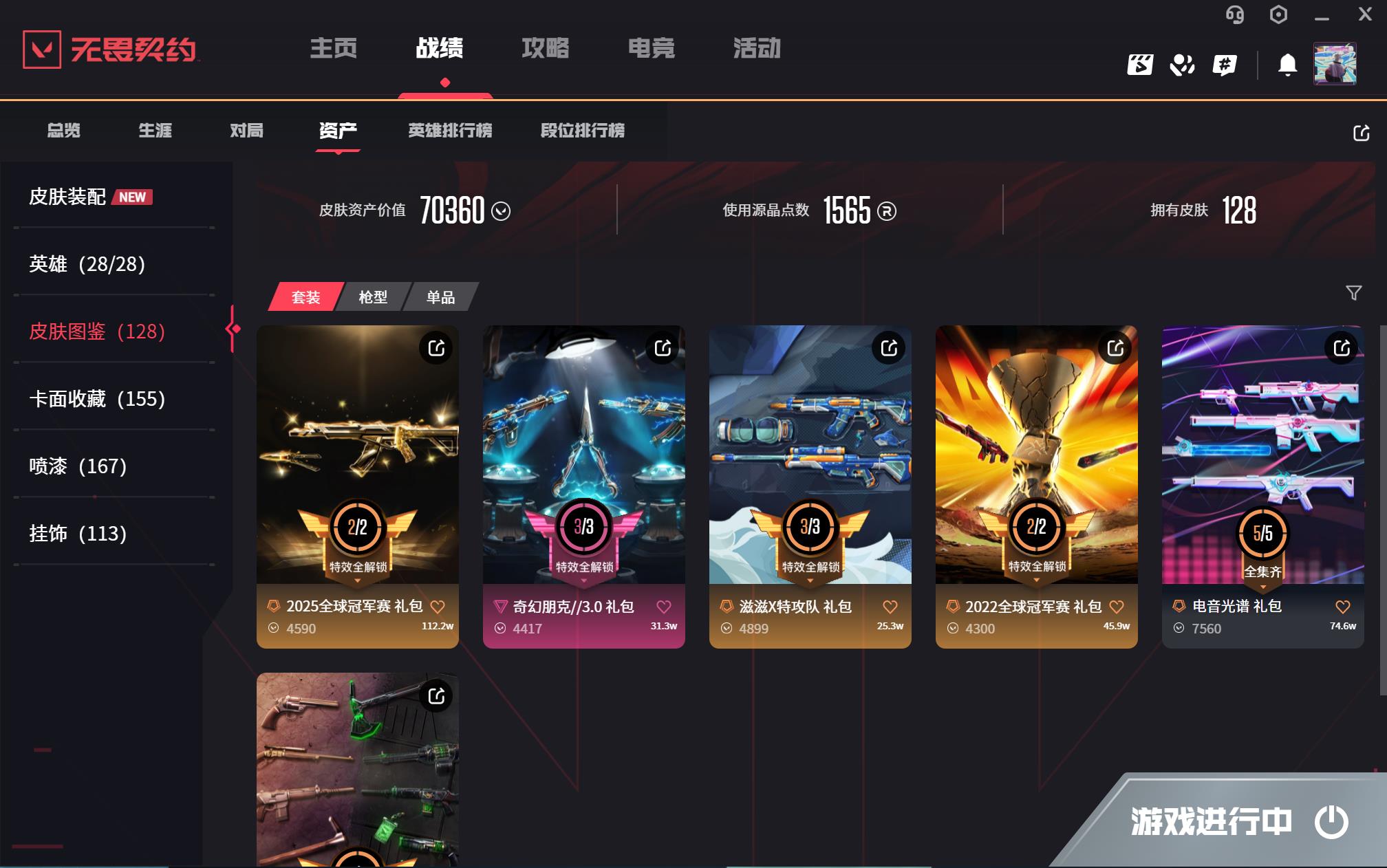 【当前段位:黄金I】精氪特效拉满毕业皮齐全✅2225冠军套滋滋X法套朋克套电音套✅盖亚紫金归零者RGX爪刀魔术火花电工钳