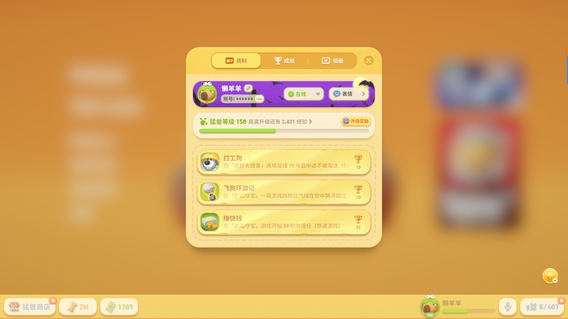 猛兽派对100级 ✨等级奖励全解锁✨上百款稀有皮肤任意挑选✨支持线下同屏幕线上联机✨包天包夜
