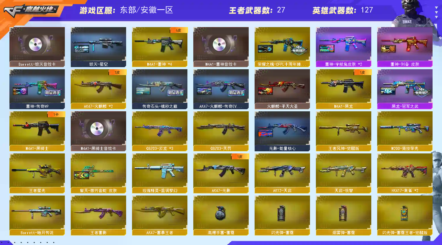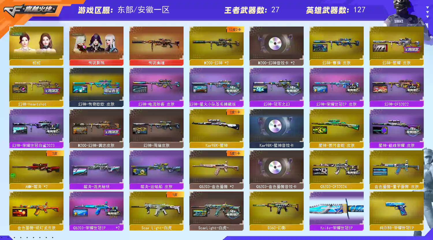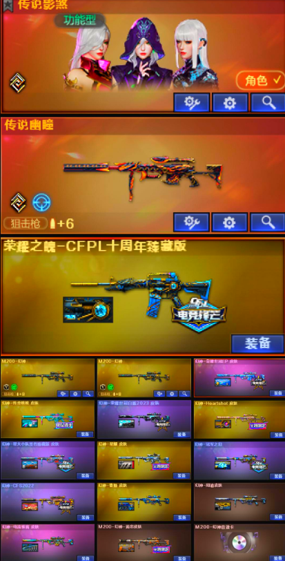 传说影煞+传说幽瞳+雷神十周年珍藏版+幻神EP欧欧12皮三件套+星神三件套+G36c幻影炽芒蝶刃+六列4盘双全装+9副手玄武