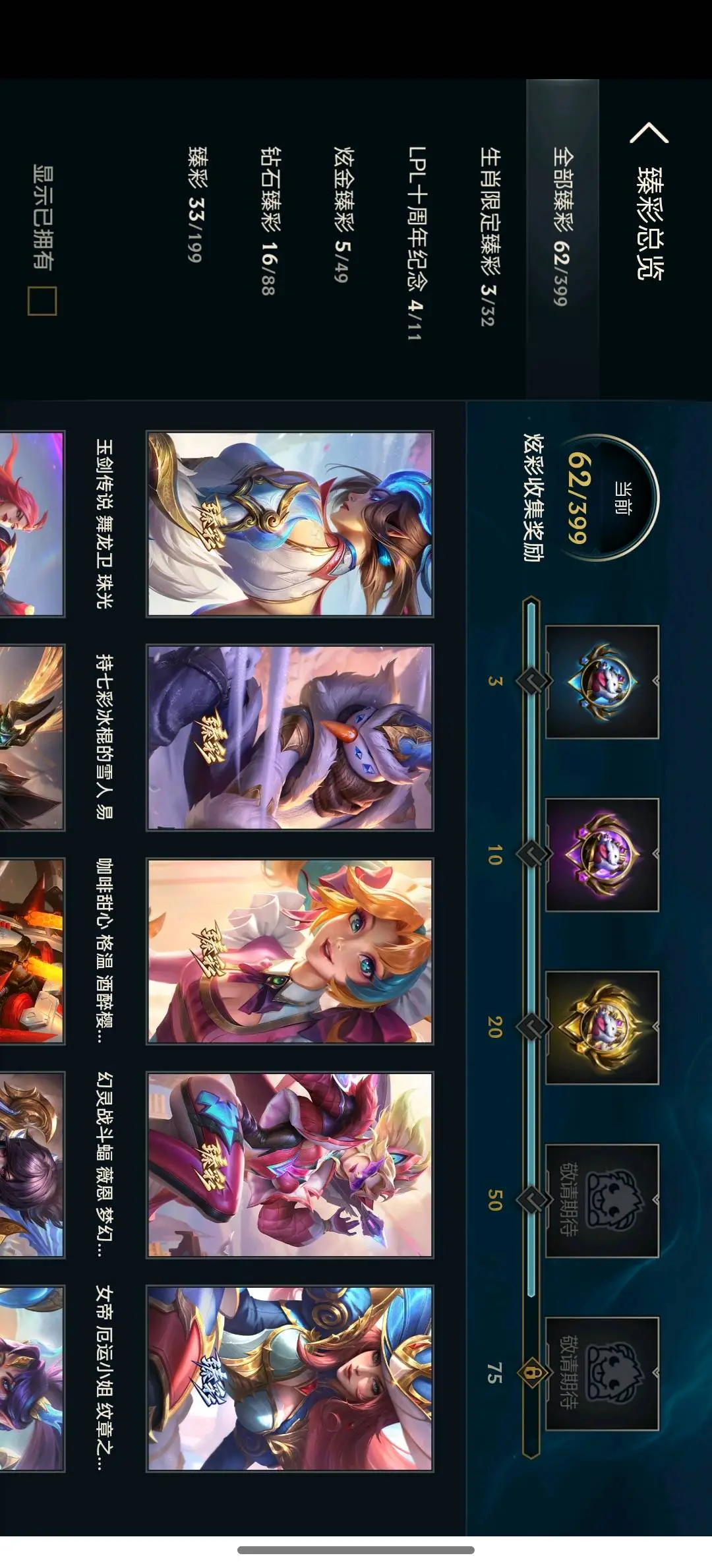 - 臻彩皮肤数量: 62