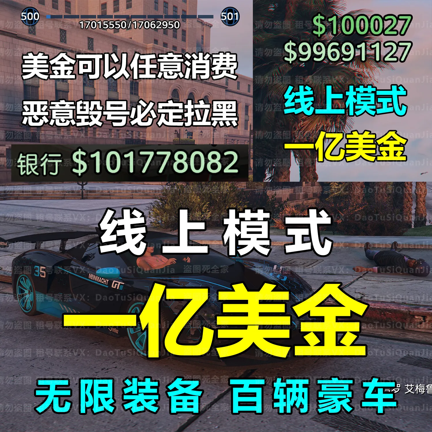 线上模式1亿美金❤️百量豪车 无限装备✅100%上号率♋已授权R星验证!因验证码问题撤单必拉黑!