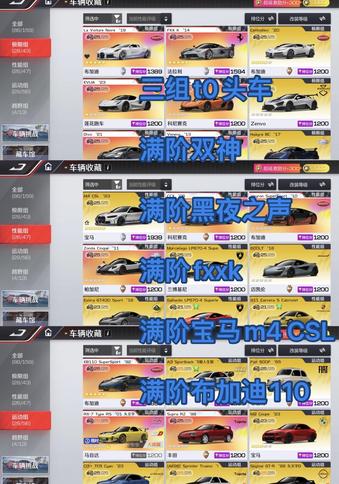 【苹果】 满阶新年双神/满阶fxxk/满阶黑夜之声/满阶宝马m4.CSL/满阶布加迪eb110/三组T0头车