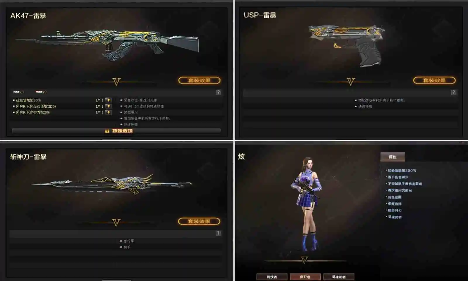 【重要光效】王者之光金色光效/王者之啸金色光效/王者之影金色光效/王者之心金色光效/王者之魂金色光效/王者之魄金色光效/AK47-火麒麟蓝色光效/AK47-黑武士蓝色光效/AN94-超新星蓝色光效/AWM-天龙蓝色光效/M4A1-死神蓝色光效/RPK-盘龙蓝色光效/加特林-炼狱蓝色光效/屠龙蓝色光效/巴雷特-毁灭蓝色光效/擎天蓝色光效/汤姆逊-烈龙蓝色光效/沙鹰-修罗蓝色光效/麒麟刺蓝色光效/龙啸蓝色光效/AK47-黑武士蓝粉色光效/M4A1-雷神蓝粉色光效/AK47-火麒麟红绿色光效/Barrett-极光红绿光效/M4A1-武圣红绿光效/M4A1-雷神红绿光效/加特林-炼狱红绿色光效/汤姆逊-烈龙红绿色光效/M4A1-千变紫色光效