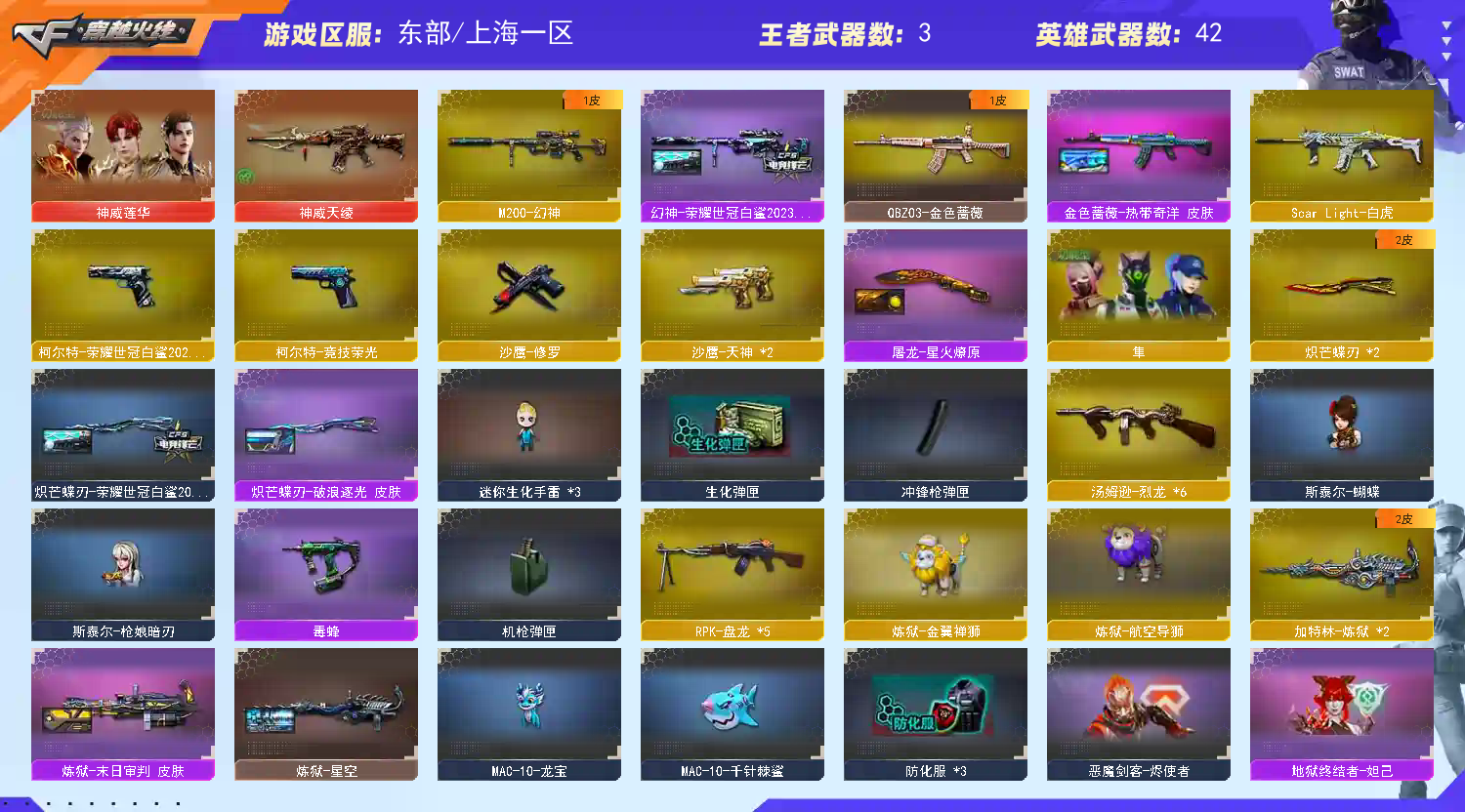 🔥🔥生爆全装 2赤芒蝶刃双皮 隼 幻神皮肤 6烈龙6盘龙斯太尔蝴蝶 枪娘 生化猎手皮肤道具齐全