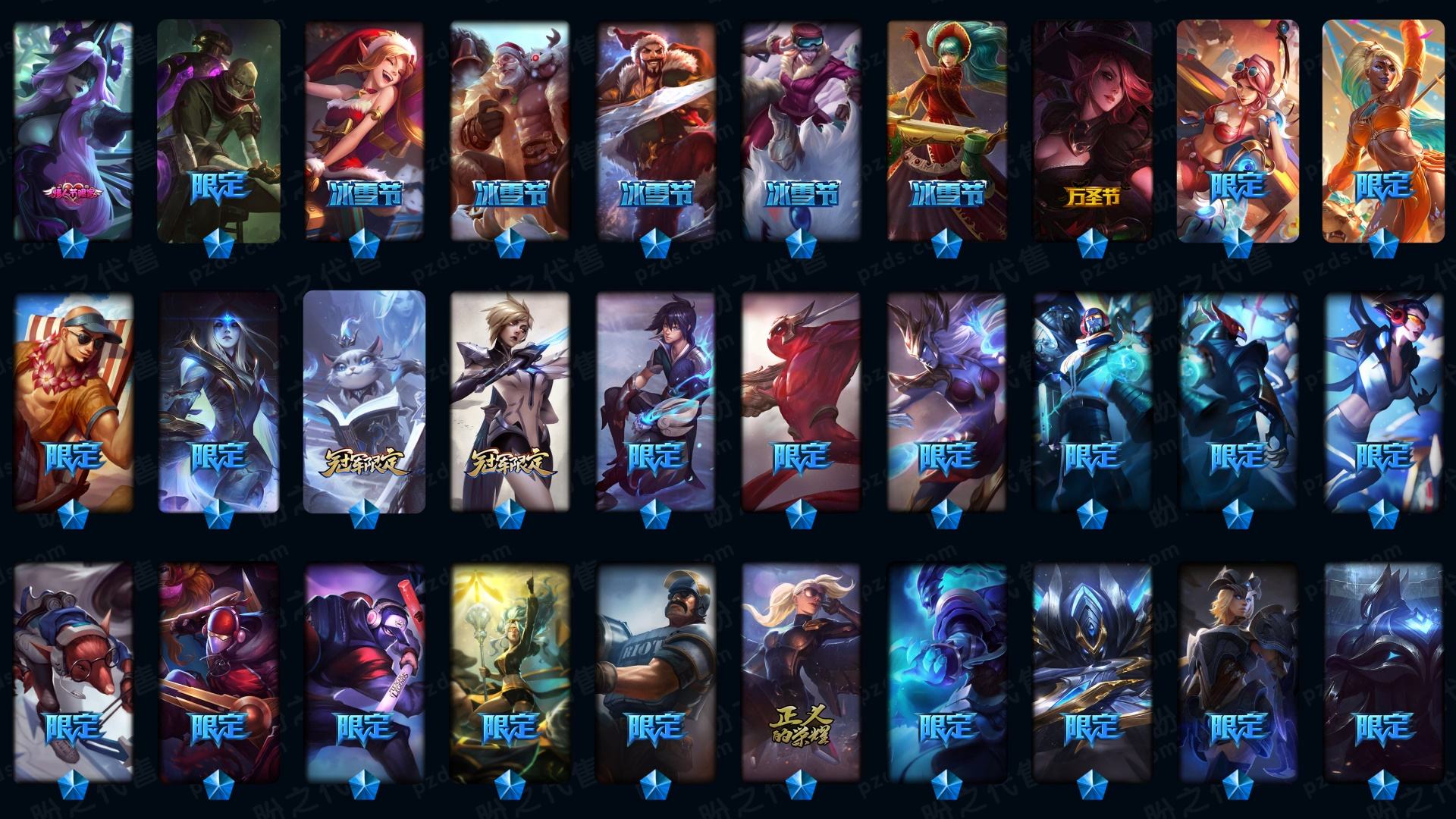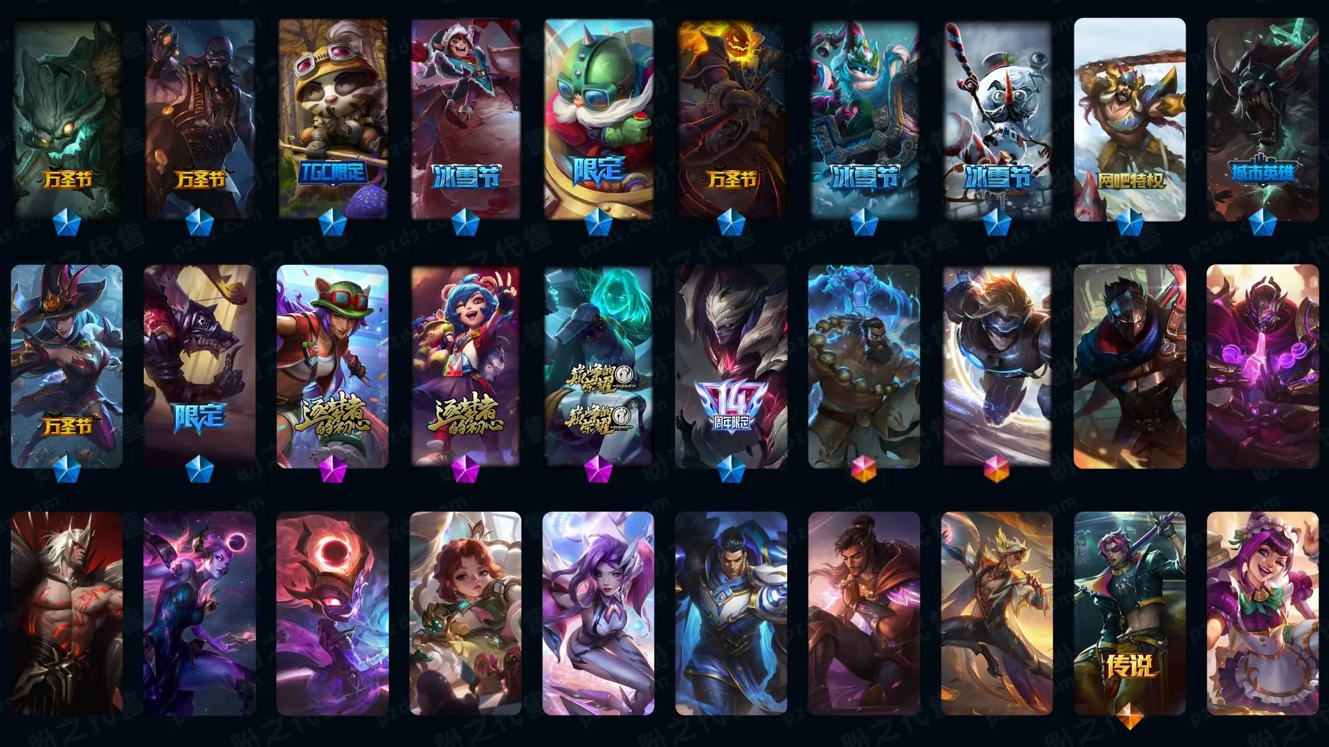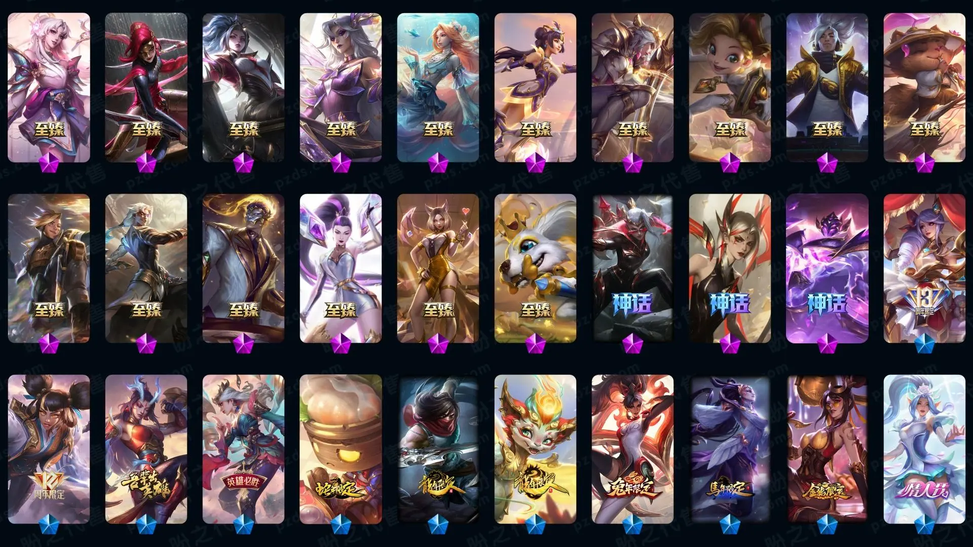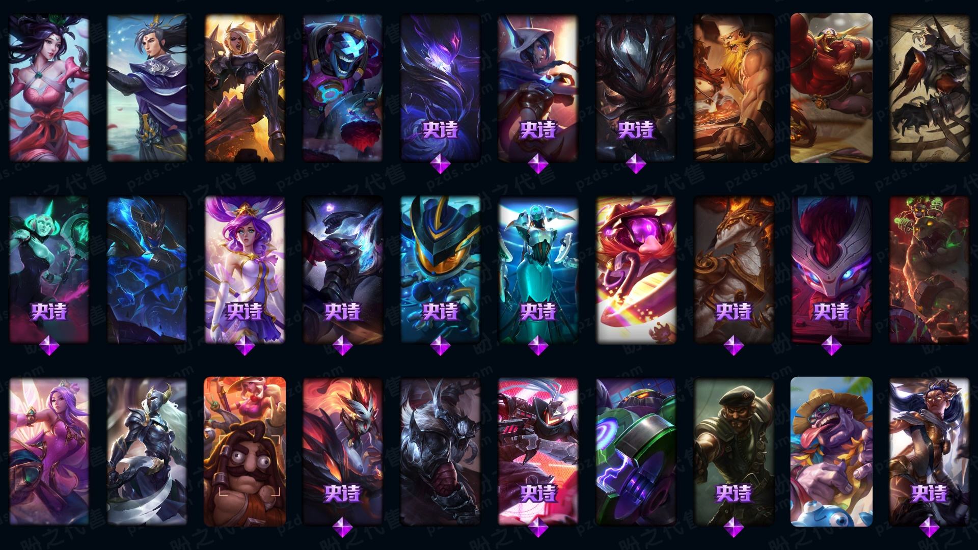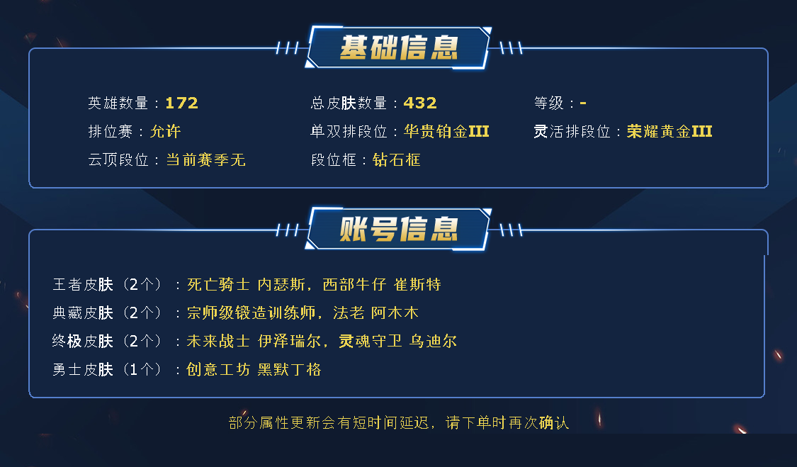 1963皮肤〓可排位妹子号白银〓全英雄〓52神话〓24臻彩〓125炫彩〓殿堂传奇〓至臻海之歌卡特拉克