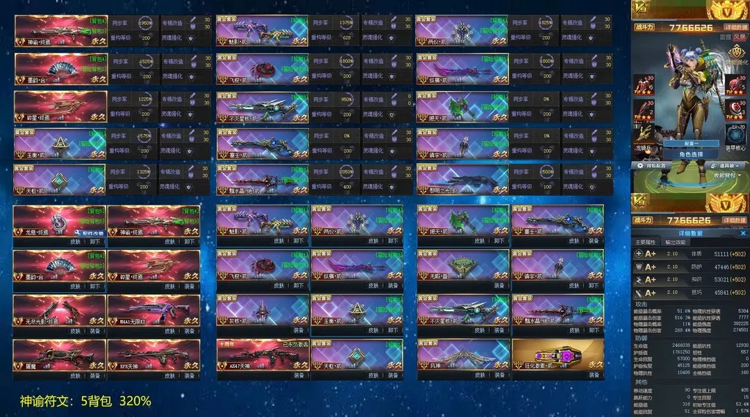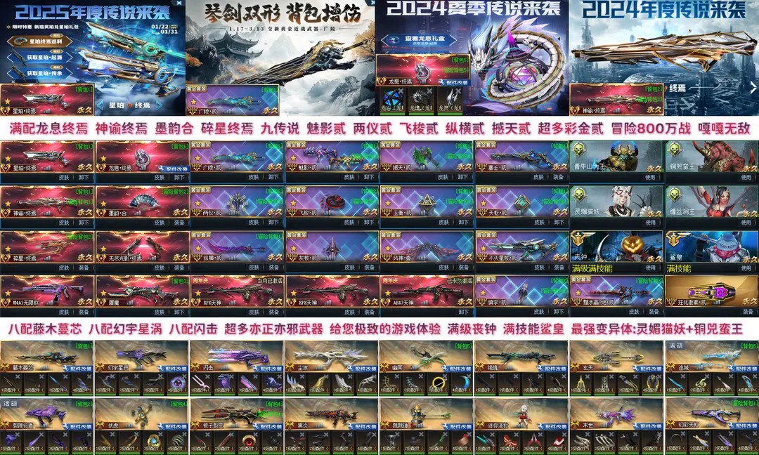 十把最强传说:龙息终焉(满配件)、神谕终焉、墨韵合、碎星终焉、无尽终焉、无限EX(紫水晶)、屠魔、RPK天神、AK天神