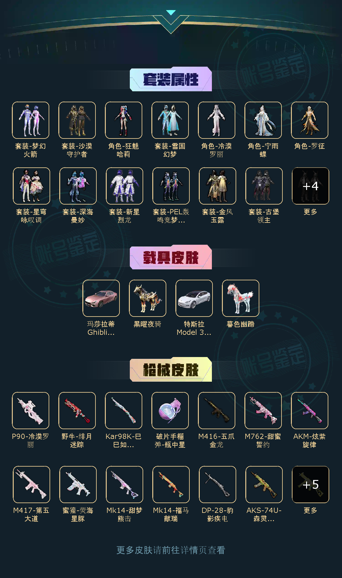 【稀有资产】套装-雪国幻梦/套装-第五大道/M416-五爪金龙/破片手榴弹-瓶中星球/SCAR-L-梦幻火箭/M416-心之恋语/小恶魔头饰/套装-深海小丑鱼/套装-小丑鱼/套装-沙漠守护者/套装-浪漫天命/套装-潮萌小黄鸭/套装-雪山精英/套装-暗影哥特/套装-龟仙人/套装-迅捷狂鲨/套装-软软马卡龙/套装-缤纷假日/套装-青涩年华/套装-圣穹绘梦/套装-东方飞龙/角色-许七安/角色-灵公主/角色-时希公主/角色-乐音/角色-情公主/角色-白光莹/M416-仓鼠灰灰/M416-快乐主宰