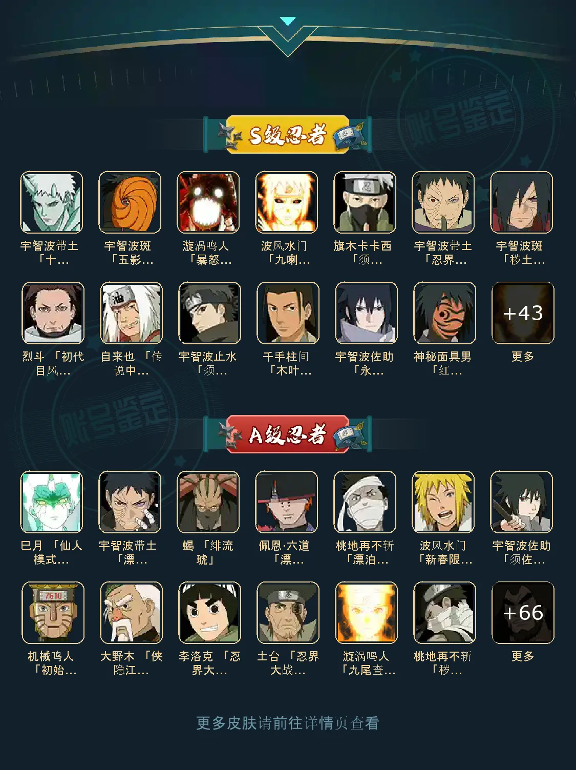 56S 75A 380忍者 桃地再不斩「漂泊武士」/蝎 「绯流琥」/佩恩·六道 「漂泊浪客」/波风水门「新春限定」/巳月 「仙人模式」/宇智波带土 「漂泊浪客」/烈斗 「初代目风影」/神秘面具男 「红夜之刃」/宇智波斑 「秽土转生·解」/自来也 「传说中的三忍」/宇智波带土 「十尾人柱力」/波风水门「秽土转生」/千手柱间 「木叶创立」/宇智波止水 「须佐能乎」/漩涡鸣人 「九喇嘛连结」/漩涡鸣人 「暴怒·第六尾」/宇智波斑 「五影会谈」/宇智波斑「白面具」/宇智波带土「忍界大战」/三代目风影 「秽土转生」/宇智波佐助 「永恒万花筒」/佩恩·天道「超」/旗木卡卡西 「须佐能乎」/波风水门 「九喇嘛连结」