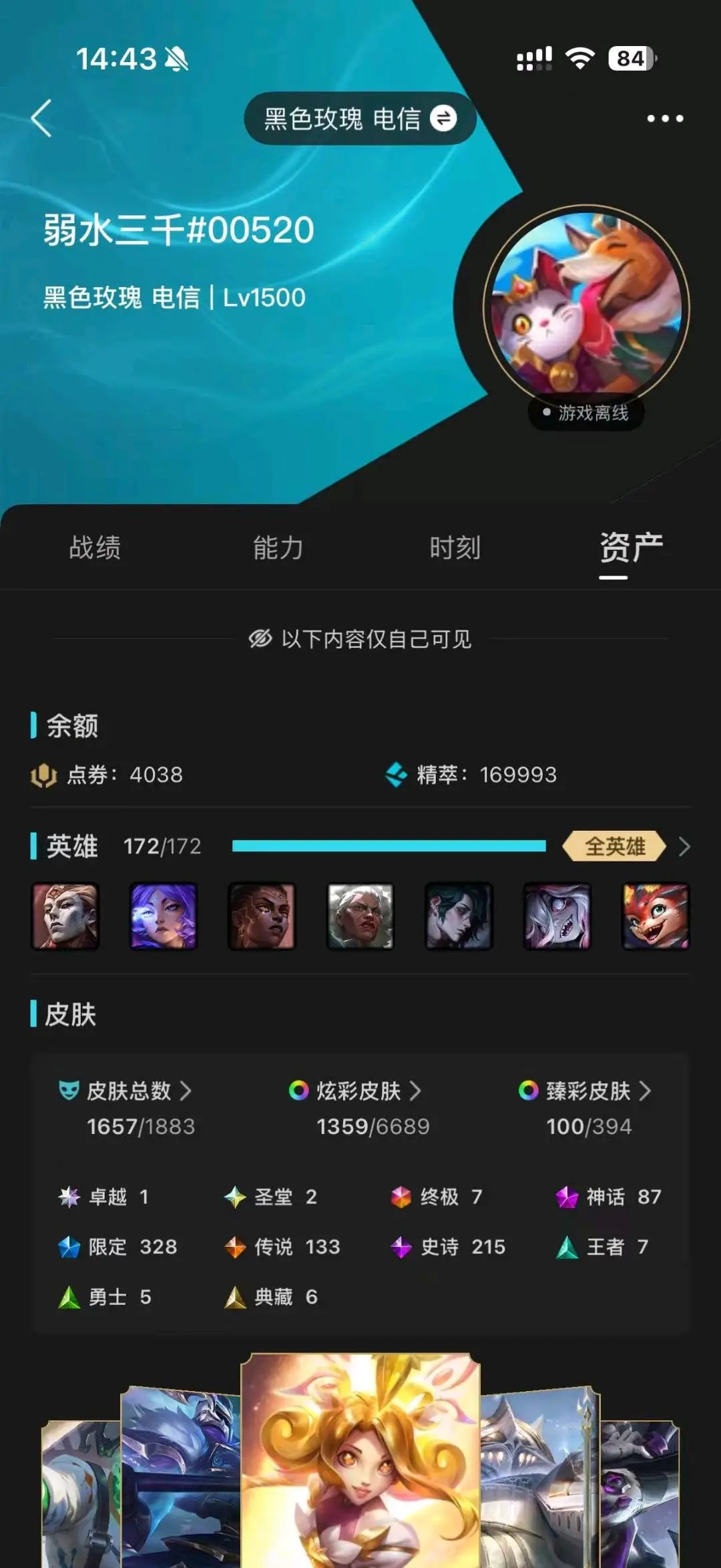 圣堂佛爷戈 联盟不朽卡莎⚡1650原皮⚡圣堂铁男⚡99臻彩⚡粉蓝白龙虾⚡至臻北极星梅尔⚡机神诺手⚡
