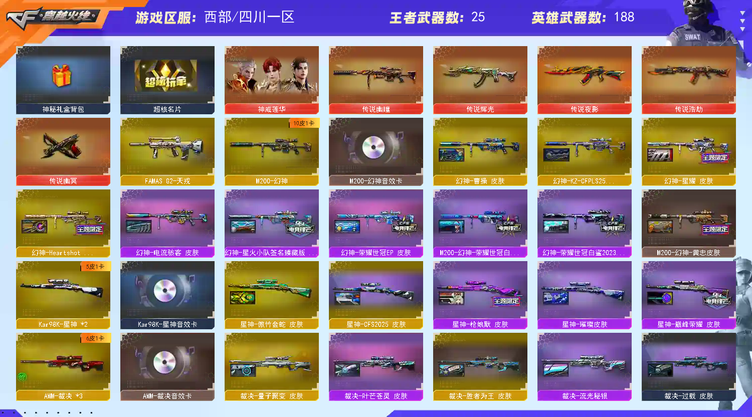 【不允许排位】幻神kz十二皮全音效传说浩劫神威莲华辉光幽瞳夜影幽冥G36C幻影qbz星神白虎三件套泡泡象七把蝴蝶刀